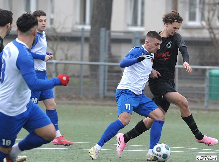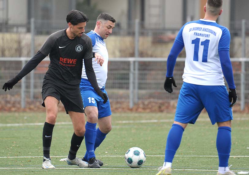 Am Sonntag trafen sich der Hoffentlich-Bald-Verbandsligist und souveräne Tabellenführer der Gruppenliga SV Bosnien/Herzegowina sowie der Hoffentlich-Bald-Noch-Verbandsligist und abstiegsgefährdete FC Kalbach zu einem Testspiel, und es entwickelte sich eine durchaus sehenswerte Partie für den frühen Zeitpunkt in der Vorbereitung. Die Gastgeber gingen früh mit 1:0 in Führung, Almir Ziga schloss in der 6.Minute einen Angriff mit einem satten Schuss aus 16 Metern ins lange Eck ab. Die Partie war in der ersten Halbzeit sehr ausgeglichen und spielerisch auf einem hohen Niveau, die Kalbacher erzielten in der 40.Minute durch den 6 Minuten zuvor eingewechselten Nassim Fallah den 1:1-Ausgleich, schön freigespielt ließ er Bosniens Torhüter Adnan Dedic keine Chance.
