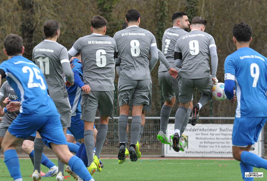Heddernheim legte gleich los, profitierte von einem Abspielfehler der Gäste. Christos Papadopoulos schickte Marco Yatci steil, der traf schon nach 44 Sekunden zum 1:0 (1.). Ginnheim versuchte sich vom frühen Schock zu erholen, doch die Germania kam nur mit Standards zu Chancen. Das eine oder andere rüde Foul im Mittelfeld hätte auf beiden Seiten auch mit Rot geahndet werden können, doch der Schiedsrichter beließ es beim Zeigen von insgesamt zehn Gelben Karten im Verhältnis 6:4. Der zahlreich vertretene Ginnheimer Anhang unter den 136 Zuschauern forderte kurz vor der Halbzeit eine Rote Karte gegen die Gastgeber nach einer Notbremse, doch der Unparteiische hatte zuvor schon auf Abseitsstellung entschieden. Fabian Raue verpasste vor der Pause die beste Ginnheimer Möglichkeit (39.). Auf der Gegenseite wurde Innenverteidiger Dogan Nazim Erbulan von Giuliano Amante geschickt und schoss am Tor vorbei (43.). Nach dem Seitenwechsel hätte Cherano Willeführ schon erhöhen können (47.), zum 2:0 traf dann Papadopoulos mit einem herrlichen Direktschuss (62.). Cherano traf danach noch den Pfosten (74.), den Nachschuss setzte Marco Yatci drüber.