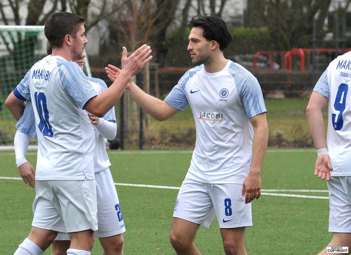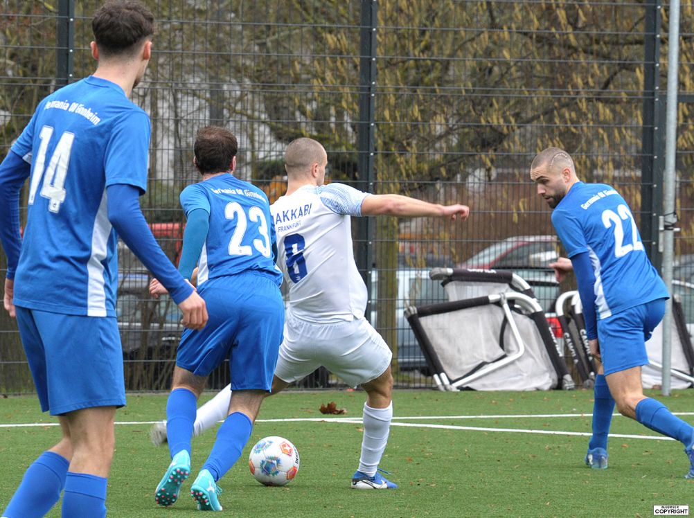 Doppelpack von Bastian Ullrich (27./38.) und die Führung durch Oualid Boulehboub (41.). Nach dem Seitenwechsel erhöhte die Germania durch Fabian Raue (60.) und Jost Guinand (65.) zielstrebig auf 5:2. In der Schlussphase wurde es nochmal hitzig und eng, denn Makkabi kam durch Etienne Merkel (68.) und Wanja Grossmann (86.) auf 4:5 heran. Doch mit Leidenschaft und Kampf brachten die Ginnheimer den Auswärtssieg über die Zeit. Der Sportliche Leiter Benjamin von Allwörden fasste zusammen: „Nach 15 Minuten, in denen Makkabi aus drei Chancen zwei Tore macht, haben wir sie dominiert und so gespielt, wie wir uns das von Minute eins vorgenommen hatten. So sind wir dann auch verdient mit der Führung in die Kabine. Zur Halbzeit ist Makkabi dann aggressiv angelaufen und wir konnten die Räume dahinter gut für uns nutzen. Nach dem Anschluss zum 5:3 hatten beide Mannschaften noch Möglichkeiten zu Toren. Am Ende war es definitiv kein unverdienter Sieg.“