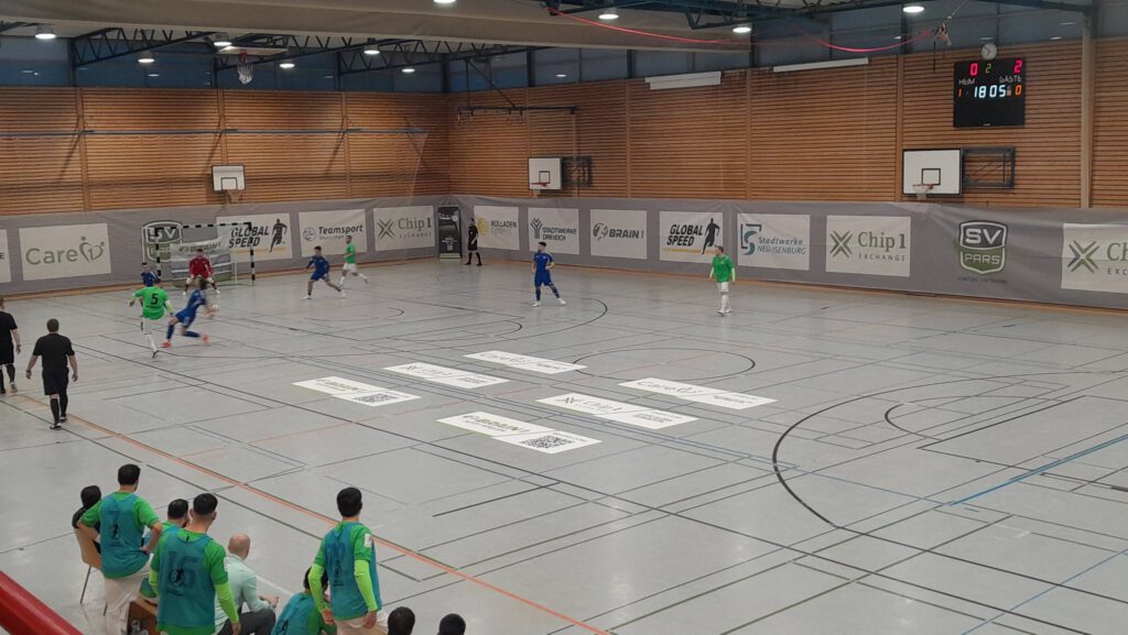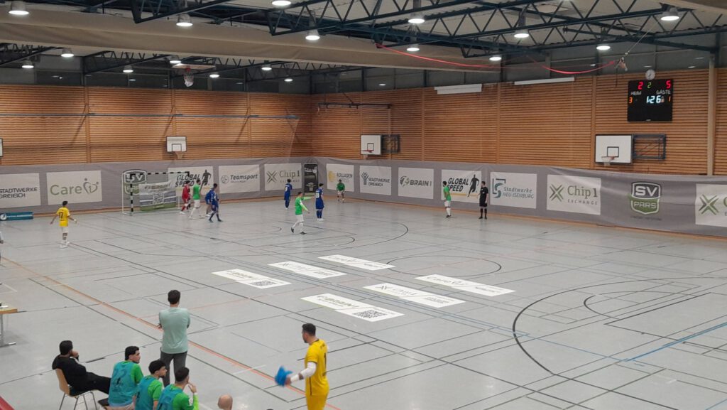 Zu Fuß ging es vom Sportpark Dreieich in die Hans-Meudt-Halle, wo das um 18 Uhr beginnende Futsal-Playoff-Spiel von Pars mitgenommen wurde.