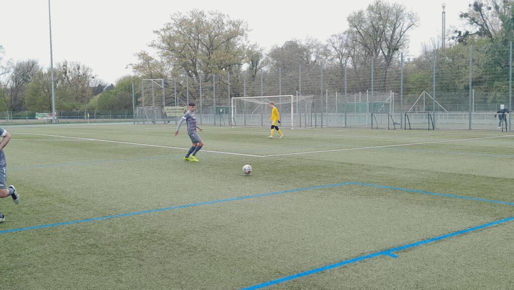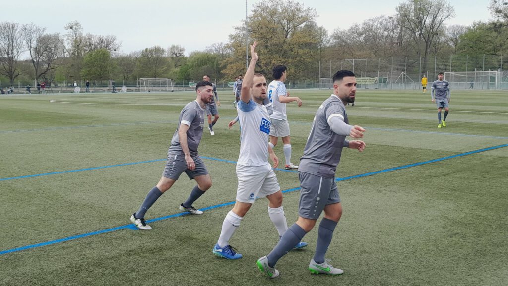 Ein Rechenfehler, der das Ergebnis von 2:2 in der „Verlängerung“ fast noch verändert hätte. Doch der Reihe nach: Auf dem großen Kunstrasenplatz im Ostpark startete Heddernheim offensiv. Cherano wurde gleich nach vier Minuten abgeblockt, dann ging ein guter Schuss von Giuliano Amante über das Tor. Immer wieder scheiterten die Grauhemden an FCG-Keeper Alexander Klein, den Trainer Maik Rudolf notgedrungen angesichts des Ausfalls von Stammkeeper Jonathan Koenen zwischen die Pfosten gesetzt hatte. „Er hat in der Jugend im Tor gespielt, ist aber eigentlich Feldspieler und hat hervorragend gegen die beste Offensive der Liga gehalten“, lobte Rudolf hinterher. So auch gegen Cherano, als der Torjäger frei durchlief, Klein aber herauskam und dem Stürmer den Ball wegnahm. Nach zwanzig Minuten näherte sich Gudesding dem Kasten von Marc Tomczyk an. Heim-Goalgetter Mutaz Husain hatte nach einem Konter die erste Chance. Dann nutzte Fabian Lifka einen Abpraller per Flachschuss zum 1:0 (20.). Dann war es wieder Cherano, der frei durch war, diesmal aber am Tor vorbei schoss. Die 66 Zuschauer im Ostpark sahen dann kurz vor der Pause doch noch den Ausgleich für den Aufstiegsanwärter. Deniz Yatci, der dienstälteste Spieler, kam über links durch, seine Hereingabe schob Cherano zum 1:1 ein (44.). Nach dem Seitenwechsel Start nach Maß für Heddernheim. Christos Papadopulos scheiterte an Klein, Cherano staubte zu seinem 31. Saisontreffer ab (47.). Jetzt lag er nur noch einen Treffer hinter dem „Preußen“ Pascal Bausch mit 32 Treffern. Auf der Gegenseite konnte sich der routinierte, lautstark dirigierende Kappel mehrfach gegen Abschlüsse von Modibo Kone auszeichnen. Einen langen Ball auf die rechte Seite konnten die Heddernheimer dann nicht verteidigen und Gudesdings Torgarant Mutaz Husain versenkte zum Ausgleich mit Saisontor Nummer 22 (75.).