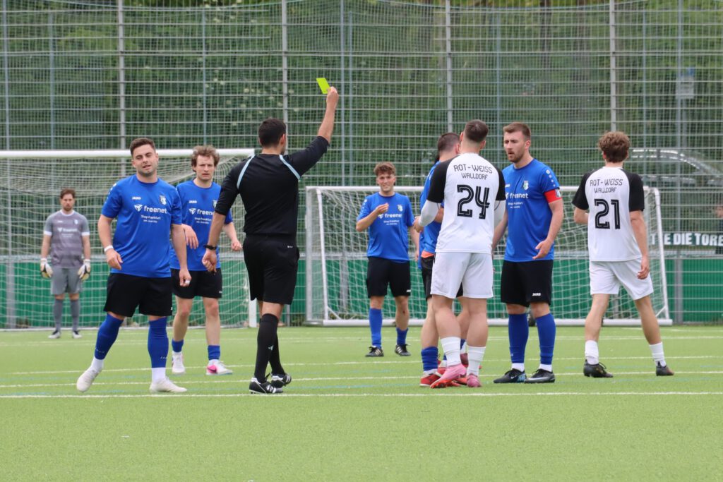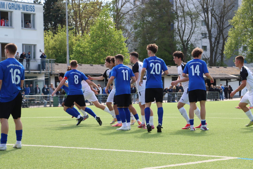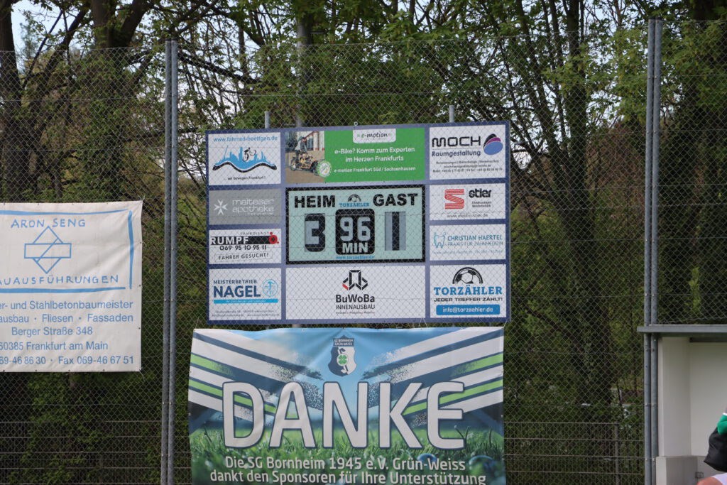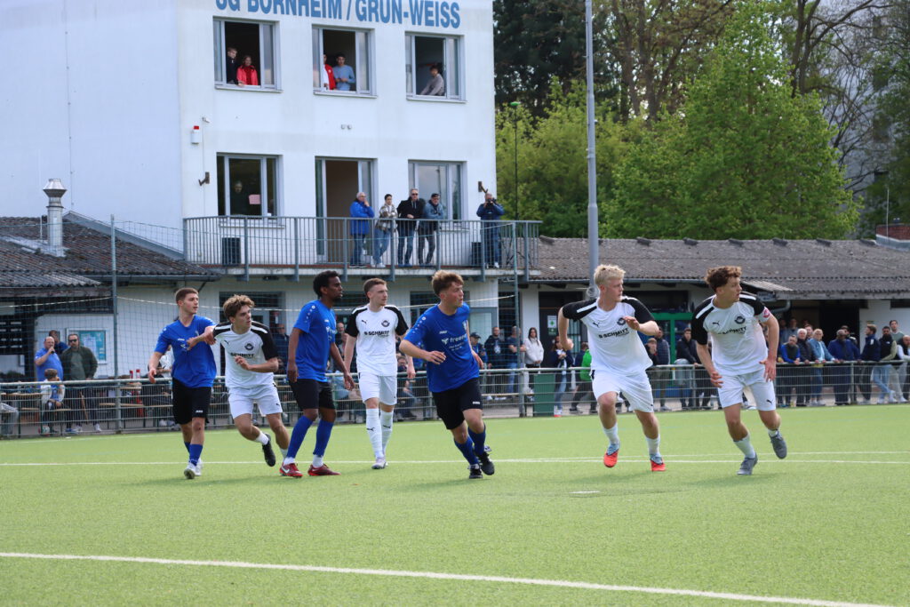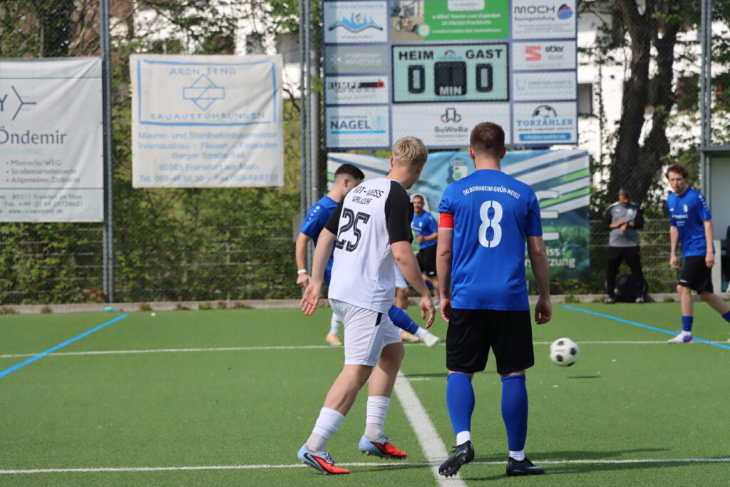 Die SG Bornheim wollte gegen die zweite Mannschaft von RW Walldorf sein fünftes Pflichtspiel in Folge gewinnen, und nach dem Einzug ins Pokalfinale letzten Donnerstag gegen den FC Kalbach konnte man durch den Sieg auch in der Tabelle auf Platz 4 vorrücken. Die Bornheimer rotierten gegenüber dem Pokalspiel etwas zurück und bestimmten das Spiel, doch gute Chancen durch Felix Casalino, Max Zeller und Abdelwahed Boujarad sowie Lukas Knell wurden ausgelassen. In der 45.Minute dann das erlösende 1:0, nach einer Ecke kam Valerio Lettieri am langen Pfosten an den Ball, seine Hereingabe konnte Ben Schwarz zum Halbzeitstand eindrücken.