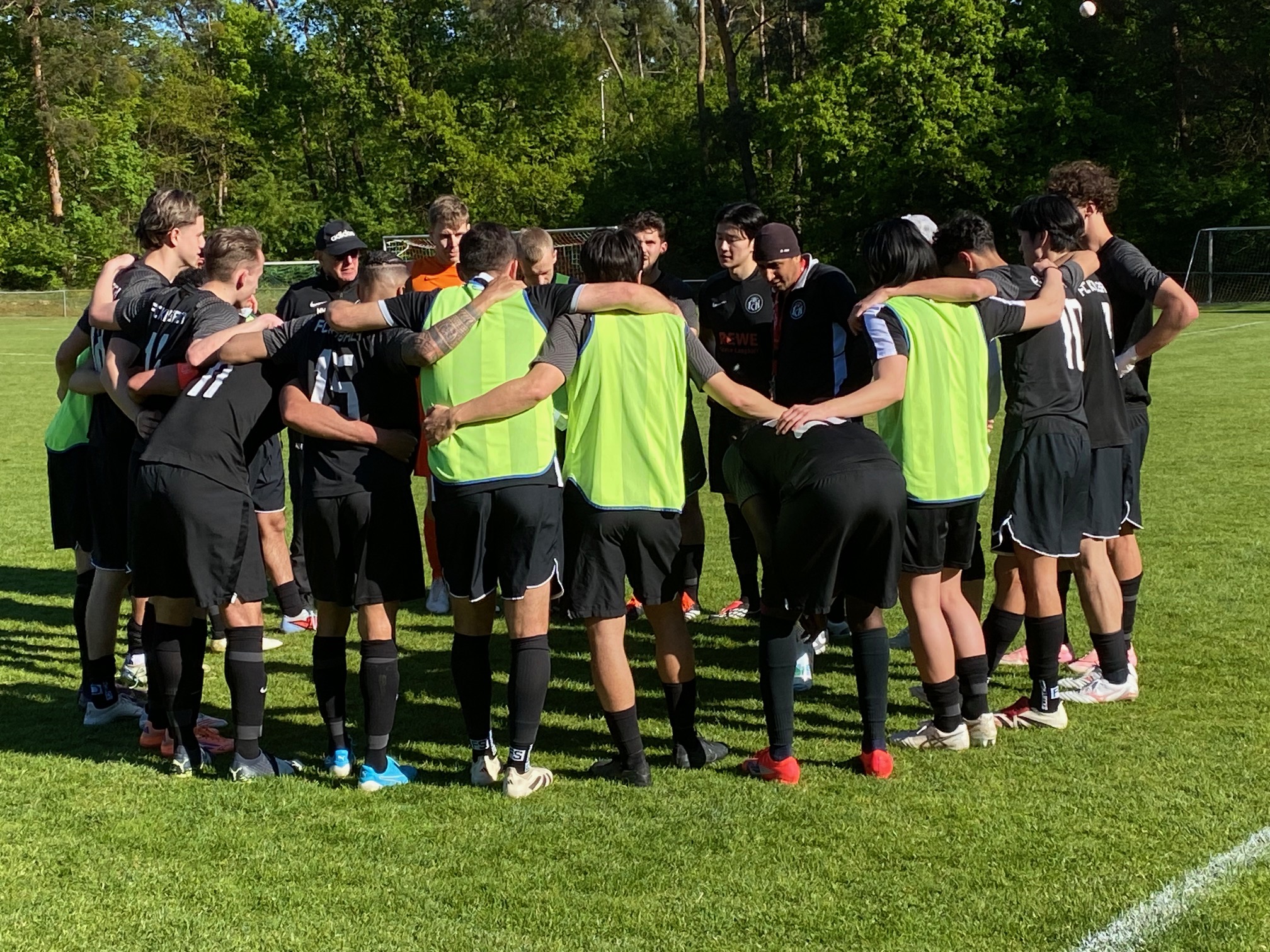 Der Jubel beim FC Kalbach war nach dem Schlusspfiff groß, nach einer guten Leistung gelang es, in der Tabelle nach dem 3:2-Auswärtssieg am Gegner 1.FC Langen vorbeizuziehen, Platz 13 ist erreicht, was derzeit nach der Lage in der Hessenliga Klassenerhalt bedeuten würde. Und der Sieg in Langen war hochverdient, weil die Gäste spielerisch deutlich überlegen waren und endlich mal auswärts auf einem großen Rasenplatz gewinnen konnten. Zu Beginn war die Partie durchaus ausgeglichen, und die Gastgeber hatten in der ersten Minute und durch einen Pfostenschuss in der 14.Minute gute Gelegenheiten, aber auch Max Steinbrecher, Torwart des 1.FC Langen, musste sich bei einem Freistoß von Lennard Marschik langmachen. In der 22.Minute konnte Laurin Hess die Gastgeber mit einem unhaltbaren Flachschuss aus 18 Metern mit 1:0 in Führung bringen.