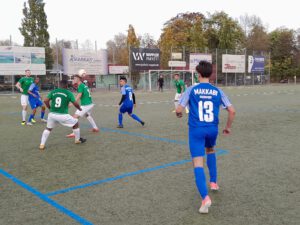 Heddernheim schaffte es auch im Heimspiel gegen Makkabi nicht, eine Führung zu konservieren geschweige denn die Defensivschwächen in den Griff zu bekommen. Der Vorjahresfünfte ist seit elf Spielen ohne Sieg und konnte vor heimischer Kulisse erneut nur kämpferisch dagegenhalten. Trotz der insgesamt sieben Tore boten beide Torhüter eine gute Vorstellung. Allein in der Anfangsphase parierte SVH-Torhüter Marcin Czukiewicz drei Torschüsse der Gäste durch Daniel Vidrascu, Santiago Alejandro Gamez Camaran und Robel Seiverth-Tsegai. Der erste Abschluss der Gastgeber kam erst nach 18 Minuten durch Dogan Nazim Erbulan – drüber. Eine Minute später prüfte Christos Papadopoulos Makkabi-Torwart Daniel Günther. Die Führung der Heimelf resultierte aus einem energischen Einsatz von Dawit Demeke, nachdem der Abpraller durch die Günther-Parade gegen den Schuss von Deniz Yatci beim Routinier gelandet war. Demeke traf zum 1:0 ins rechte Eck (29.). Kurz vor der Pause glich Makkabi aus, weil Daniel Vidrascu nach einem Freistoß in die Mauer völlig frei stand und Czukiewicz überwinden konnte (43.).