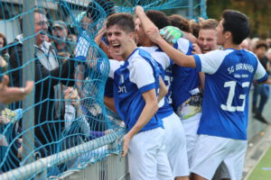 Der Bornheimer Siegtreffer kam dann doch noch in der 78. Minute zustande. Gure legte einen langen Ball per Kopf quer und Paul Schmanke traf entscheidend. Die letzten Minuten mussten die Gäste bei hohen Bällen noch zittern, Ben Schwarz klärte mit dem Kopf vor der Linie. „Mit vier Wechseln konnten wir das Spiel von der Bank aus für uns entscheiden“, sagte Volk.