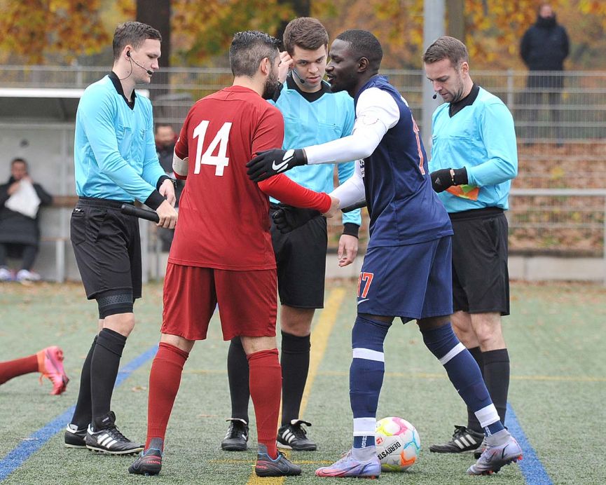 Denn die Gäste ließen sich nach dem 2:3 von Manuel Profumo (71.) immer weiter hinten rein drängen, verursachten einen unnötigen Freistoß, den Robin Horst zum Ausgleich direkt verwandelte (86.). Der in der 87. Minute eingewechselte Ayoub Lahchaychi nahm nur fünf Minuten am Spiel teil. Nach einer Rudelbildung, ausgelöst durch ein rüdes Einsteigen von Ahmed Diack gegen Esay Tukou, geriet Laychaychi mit einem Betreuer der Gastgeber aneinander und sah die Rote Karte (90.+2).