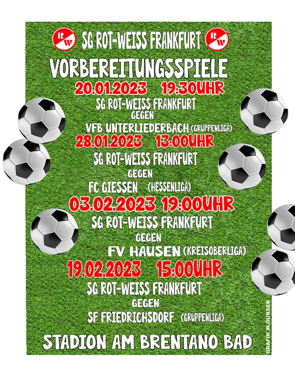 Nach dem Kreispokal-Achtelfinale beim SV 07 Heddernheim (12. Februar, 14.30 Uhr) kommt am Faschingssonntag der ambitionierte Tabellenzweite der Gruppenliga Frankfurt West, die Sportfreunde Friedrichsdorf. Hier spielen mittlerweile mit Andre Fliess und Turgay Akbulut auch zwei ehemalige „Rote“.