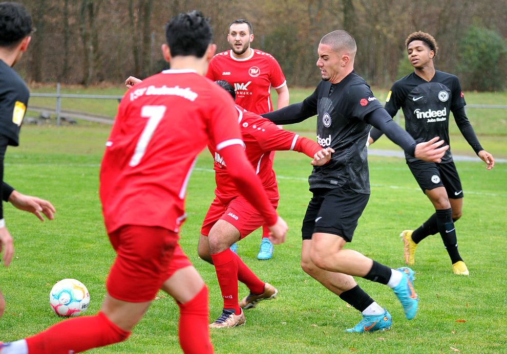 Nach einer trainingsintensiven Woche sollten die Schützlinge von Trainer Kristjan Glibo gegen den drei Klassen tiefer angesiedelten Gegner aus dem Rodgauer Stadtteil ihre Klasse ausspielen. Doch die U21 der Eintracht tat sich 36 Tage nach dem letzten Pflichtspiel bei unangenehmem Regen und Wind schwer mit den Platzverhältnissen auf dem aufgeweichten Grün.
