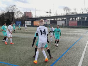 Zuvor hatte sich sein Team gegen den sich gut präsentierenden Sprendlinger Gegner recht schwer getan. Nur als sich Tim Wiesner auf der linken Seite durchsetzte und David Burgstaller nach innen passte konnte David Kollig den als Torhüter agierenden Feldspieler der Gäste überwinden (17.).