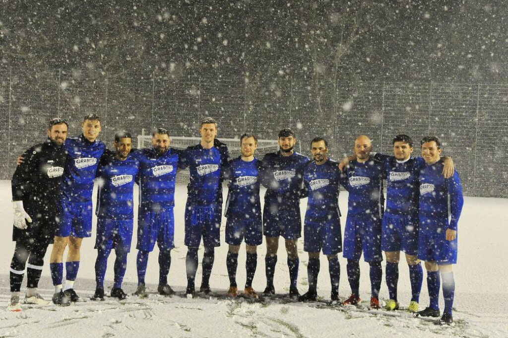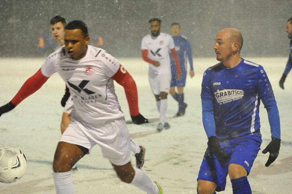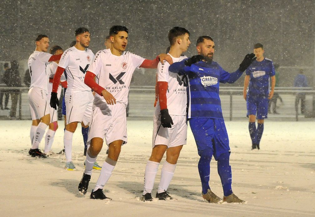 Trotz der erschwerten Bedingungen rollte zunächst der rote Ball über den weiß eingehüllten Kunstrasen. Tiryaki leistete die Vorarbeit für das erste Tor der Gastgeber durch Luka Cabraja (20.), nachdem Unterliederbach kurz zuvor einen Lattentreffer zu verzeichnen hatte.