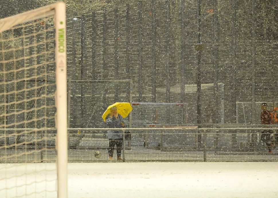 Angesichts der Schneemassen sicher die vernünftigste Entscheidung. Und auch die 43 Zuschauer hatten sicher nichts dagegen, etwas früher zu Hause anzukommen.