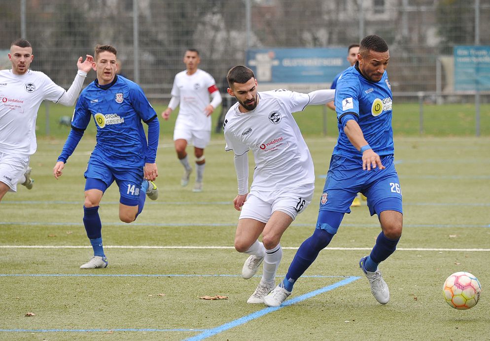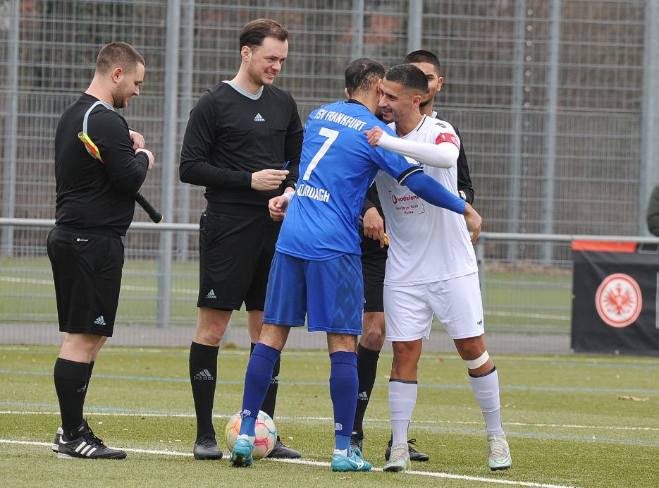 Amid Khan Agha (68.), Kyle Cameron Walter Spence (78.) und Giorgio Del Vecchio (81.) trafen für den Favoriten vom Bornheimer Hang. Als sich der Hanauer Semih Sentürk schwer verletzte und schreiend am Boden lag, entschied der Schiedsrichter, die Partie nach 86 Minuten vorzeitig für beendet zu erklären.