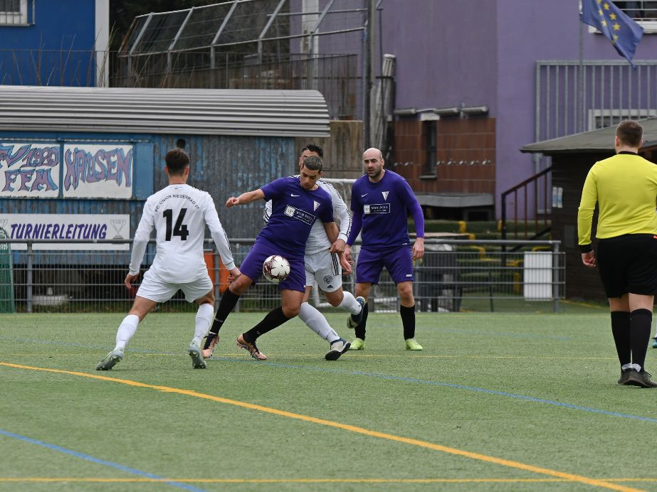 Shion Tsuji und Karim Bökenkamp vergaben im Strafraum aus aussichtsreichen Positionen. Dazu reagierte Union-Torhüter Eihab Weninger bei einem Kopfball von Tobias Neugebauer glänzend. „Am Ende des Tages hätte sich keiner beschweren können, wenn wir das Spiel noch gedreht hätten“, sagte Coutinho. Am Donnerstag erwarten die Lila-Weißen um 20.15 Uhr im letzten Kreispokal-Achtelfinale den Verbandsligisten FFV Sportfreunde. Auf Seiten der Niederräder meinte der Vorsitzende Khalid Lamjahed: „Wir waren nach der ersten Chance des verletzt ins Spiel gegangenen Emir Drino hochüberlegen und gingen folgerichtig in Führung. Bis zur 35. Minute kam von Hausen nichts. In der zweiten Halbzeit ergab sich ein ganz anderes Bild. Wir wirkten müde und Hausen drückte auf unser Tor. Wir haben den Sieg über die Zeit gerettet und sind froh über die wichtigen drei Punkte.“