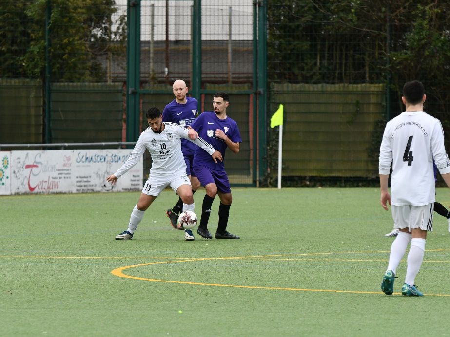 Hausens Trainer Federico da Costa Coutinho ärgerte sich über die „sehr schlechte erste Halbzeit. Wir kennen die Unioner und wussten, wie sie spielen.“ Der Niederräder Marco Dietrich versenkte einen Freistoß aus 35 Metern als Aufsetzer zur Führung der Gäste (22.). Nach einem Eckball von Caspar Oechsler verdoppelte Dietrich den Vorsprung für den Außenseiter (33.). „Wenn Union führt, dann ist es schwierig. In der Halbzeit haben wir uns einiges vorgenommen. Da muss ich meiner Mannschaft Respekt zollen. Da haben wir viele Meter gemacht und viele gute Chancen herausgespielt, sind aber an uns selbst gescheitert“, erklärte Coutinho.