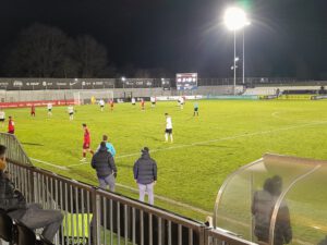 Die Gäste aus dem Main-Taunus-Kreis starteten offensiv und selbstbewusst ins Spiel. Ferdinand Scholl drang schon in der 4. Minute in den Strafraum ein, zielte aber drüber. Dann führte ein Fehlpass der Gastgeber im Spielaufbau zum Abschluss von Jonas Kummer – drüber (5.). Sehr nervös agierte die U21, insbesondere Torwart Simoni verließ diverse Male seinen Strafraum, um unnötige Fouls zu begehen. Er hatte Glück, dass er erst in der 40. Minute die Gelbe Karte sah und seine riskante Spielweise nicht mit einem Platzverweis bestraft wurde. In Führung ging nach einer halben Stunde dennoch die Eintracht. Nach einem Foul an Gianluca Schäfer gab es Foulelfmeter, den Spezialist Wachs souverän verwandelte – 1:0 (30.). Kurz danach hatte Scholl den Ausgleich auf dem Fuß, statt einzuschieben legte er aber quer und die Chance verpuffte.