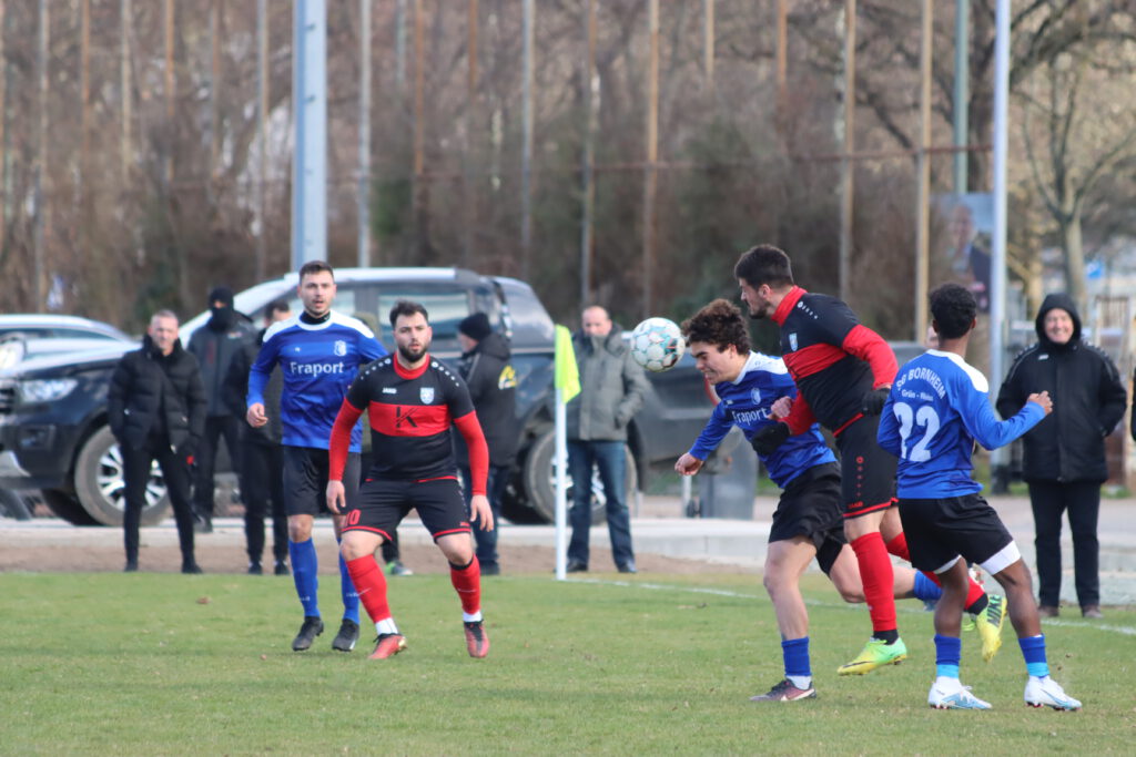 Hakemi gelang dann wenigstens noch der Ehrentreffer für die Gäste (75.). Bornheims Trainer Lucas Milbredt sah entgegen der Heimseite „ein relativ ausgeglichenes Spiel auf einem sehr schwer zu bespielenden Rasenplatz. Es wurden viele lange Bälle gespielt und harte Zweikämpfe geführt. Trotz Personalausfällen – es spielten zwei Spieler aus der U19 – haben wir das respektabel gemacht.“