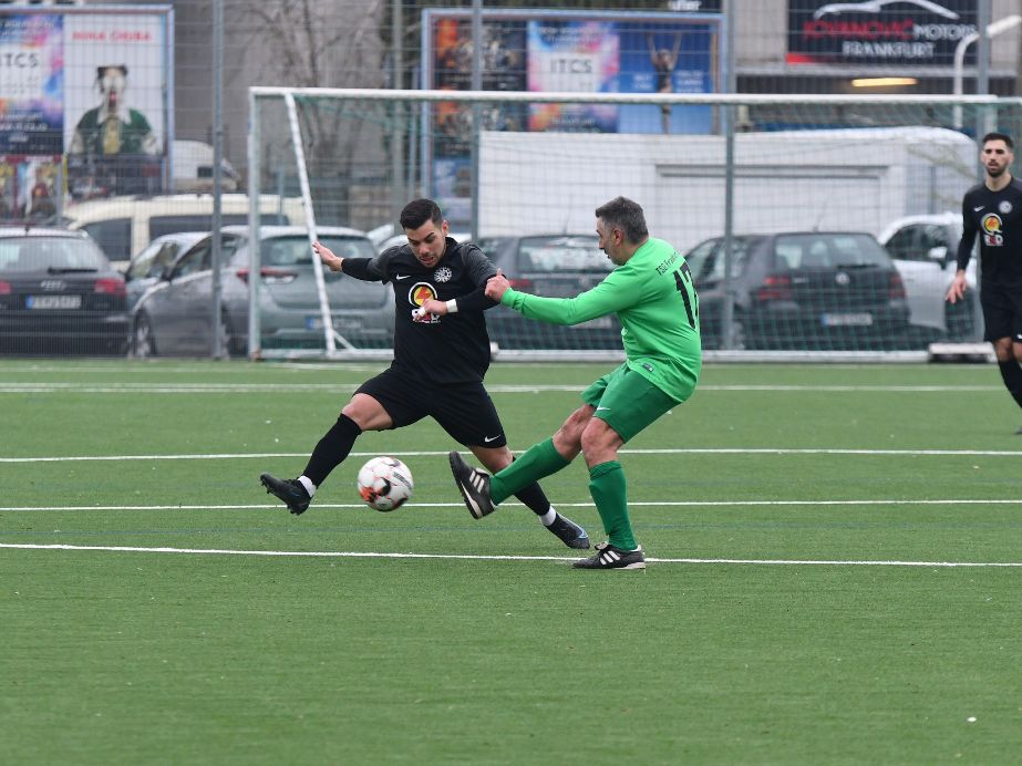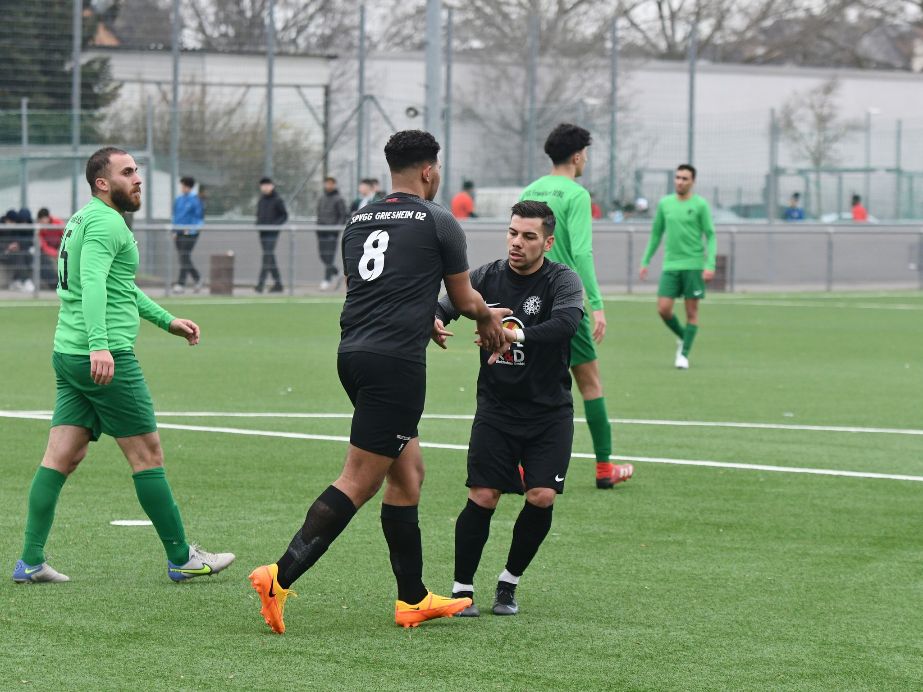 Griesheim war in allen Belangen überlegen gegen die Gäste aus Niederrad, bei denen sich das mitspielende Vorstandsmitglied Hakan Akkoc nach zehn Minuten schon wegen Meckerns die Zeitstrafe abholte. Da führten die Gastgeber schon mit 2:0 durch Deniz Pekgüzelyigit (4./7.), kurz genannt „Pekki“. Der schnelle Flügelspieler war von den Niederrädern nicht zu halten und machte mit dem dritten Tor schon früh seinen Hattrick perfekt (18.).