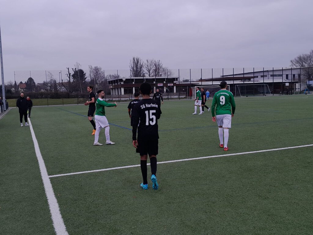 Harheim büßt seine gute Ausgangsposition aus der Hinrunde immer mehr ein. Seit sieben Partien wartet die Mannschaft von Trainer Tomas Pelayo auf einen Sieg, holte in diesem Zeitraum aber immerhin auch vier Unentschieden. Die Anhänger der Gastgeber erlebten einen gebrauchten Sonntag. Die Hausherren gaben alles, konnten aber ihre vielen personellen Ausfälle nicht kompensieren. Heddernheim agierte von Beginn an druckvoller und erarbeitete sich zahlreiche Tormöglichkeiten. Auf Zuspiel von Oliver Solarz zielte sein Sturmpartner Christos Papadopoulos flach am von Fabian Zscheich gehüteten Tor vorbei (4.). Dann kam Solarz im Strafraum zu Fall, aber Schiedsrichter Frank Lezius entschied auf Weiterspielen (8.). Harheim kam dann über den fleißigen Yafet Tsighe zum Abschluss. Von SVH-Kapitän Philipp Siegel abgefälscht gab es Ecke, die nichts einbrachte (12.).