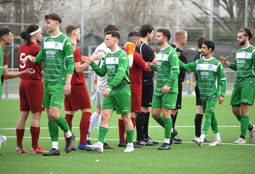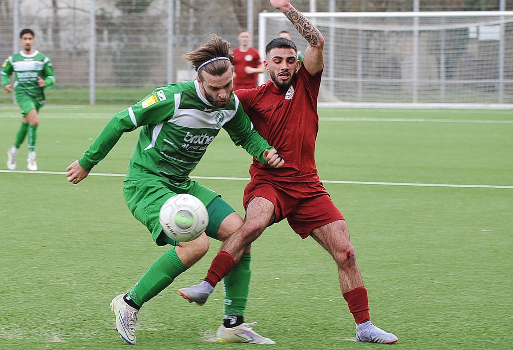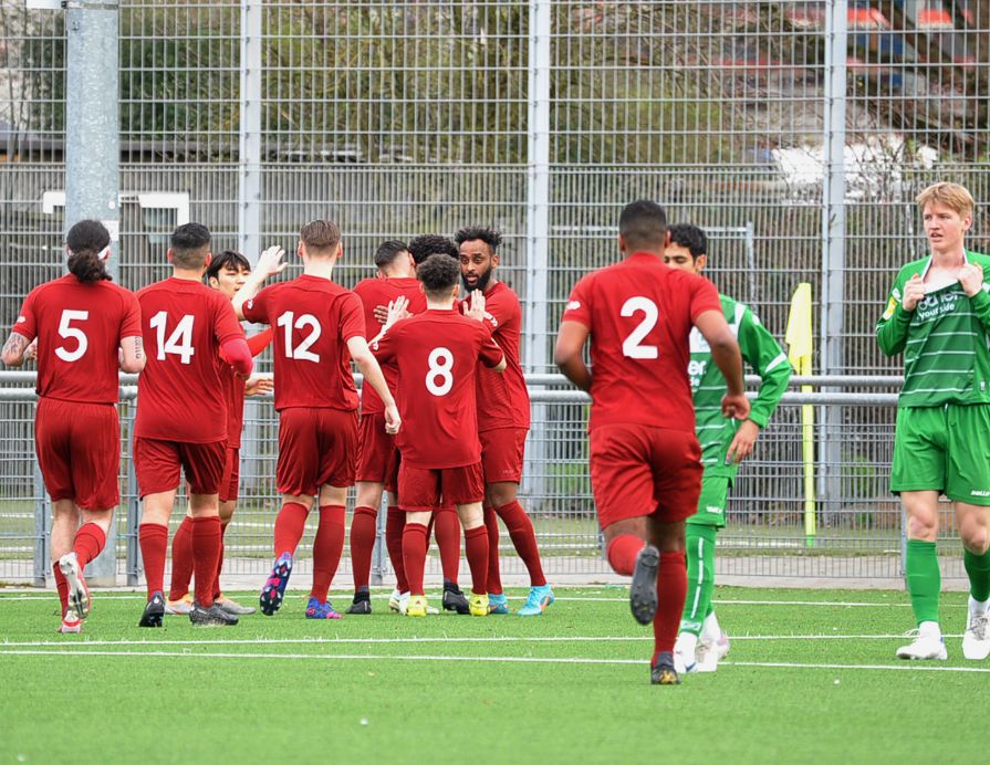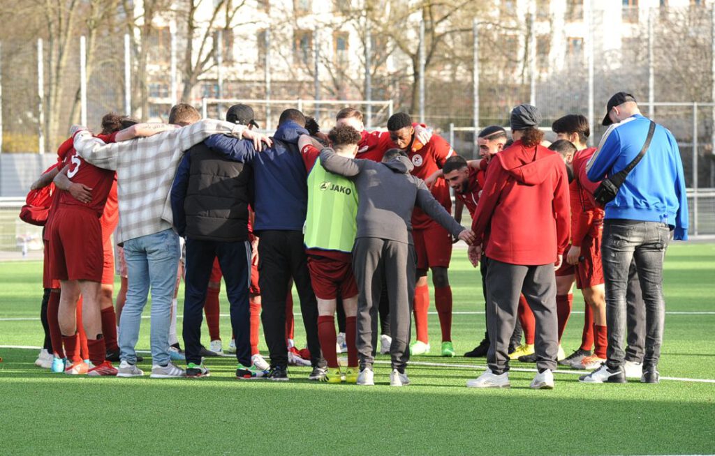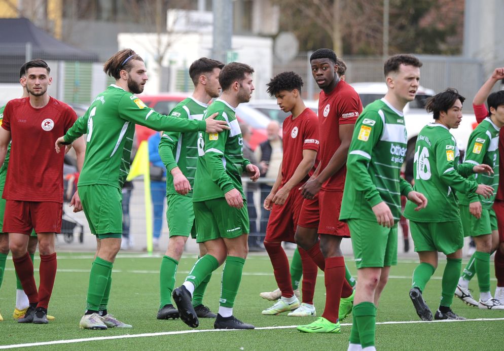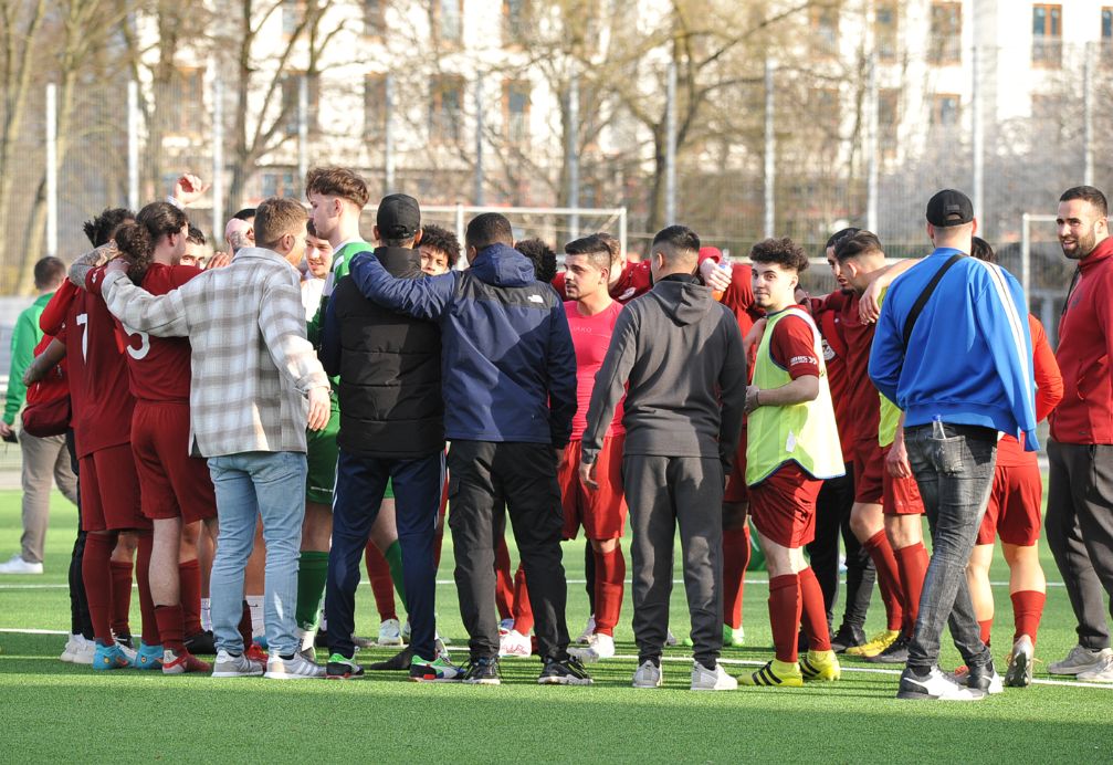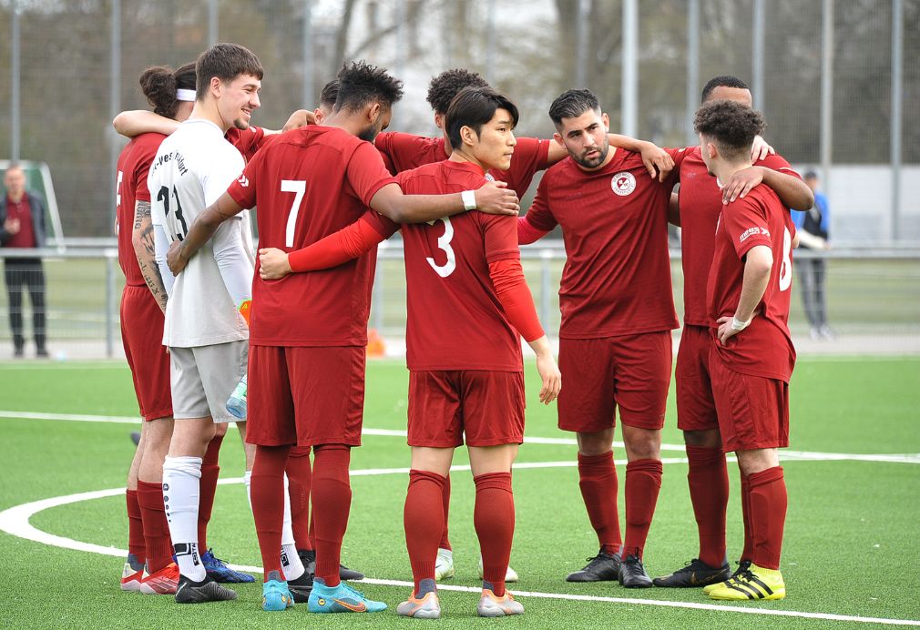 Es war ein denkwürdiger Nachmittag mit einem denkwürdigen Ende auf dem Kunstrasenplatz unweit des Brentanobades. Im ersten Durchgang sah es noch nach einer gewöhnlichen Partie aus. Die „Roten“ gingen gegen den direkten Konkurrenten durch Justin Barry in Führung (6.). Bad Vilbel glich durch Vladimiros Safaridis per Foulelfmeter aus (9.) und danach ging der Hessenliga-Absteiger nach einem Zuspiel von Philipp Schaal durch Masahito Morishima in Führung (14.).