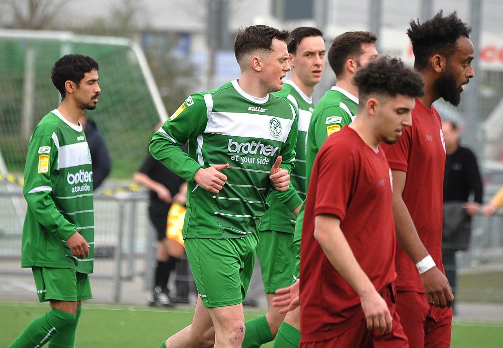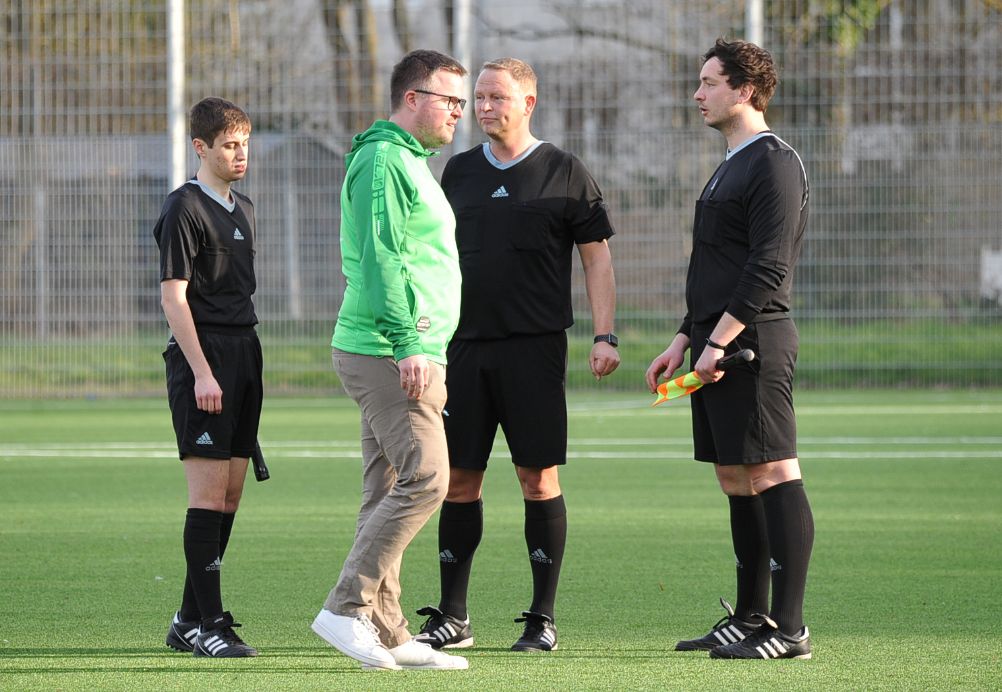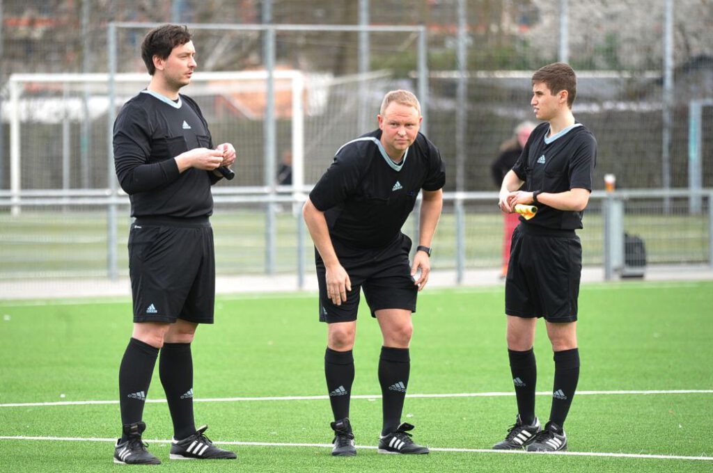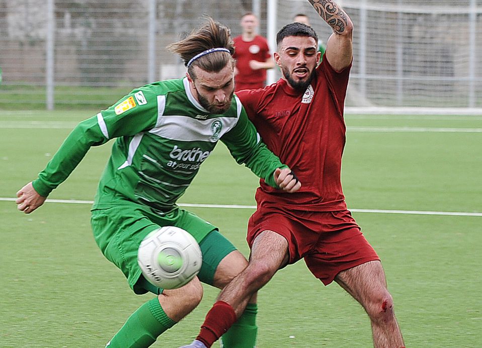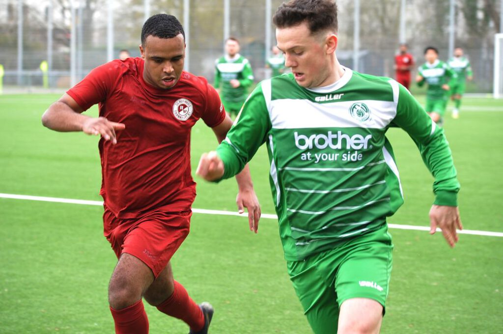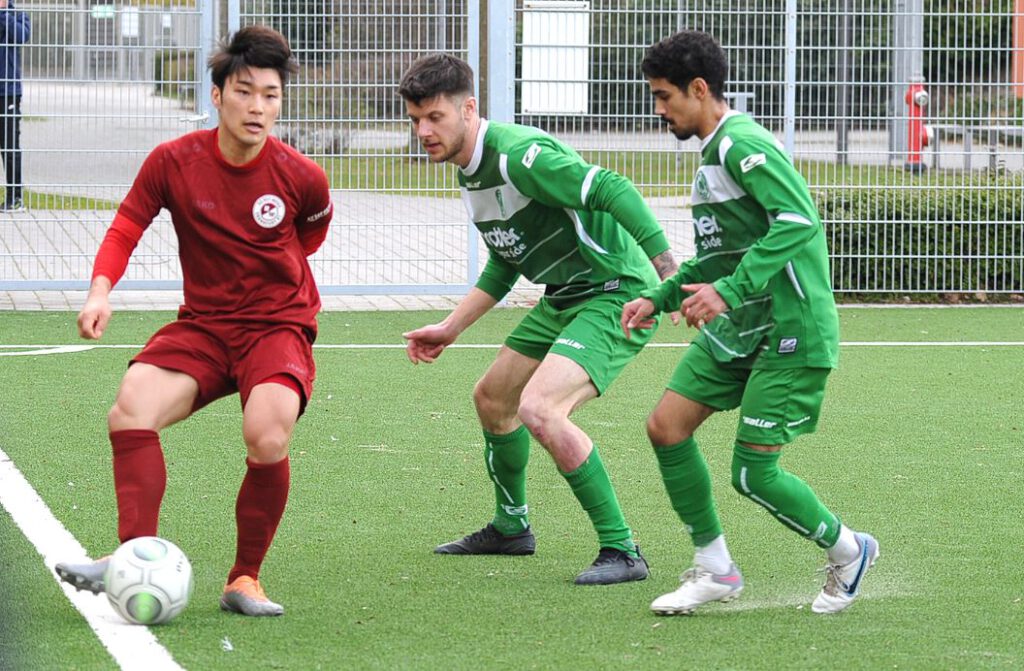 Es war ein denkwürdiger Nachmittag mit einem denkwürdigen Ende auf dem Kunstrasenplatz unweit des Brentanobades. Im ersten Durchgang sah es noch nach einer gewöhnlichen Partie aus. Die „Roten“ gingen gegen den direkten Konkurrenten durch Justin Barry in Führung (6.). Bad Vilbel glich durch Vladimiros Safaridis per Foulelfmeter aus (9.) und danach ging der Hessenliga-Absteiger nach einem Zuspiel von Philipp Schaal durch Masahito Morishima in Führung (14.).