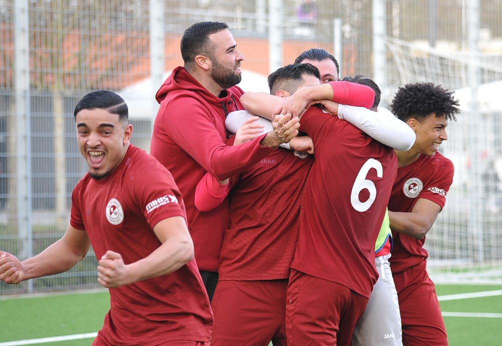 Kraus eröffnete sich mit einem Foulelfmeter die Chance zum 4:2, doch Torhüter Bennet Karrer hielt (88.). Da hatten die Gastgeber ihr Auswechselkontingent längst erschöpft und konnten nicht mehr reagieren. „Unser Stürmer Nahom Ogbay war verletzt und stand nur noch an der Mittellinie herum. Wir waren eigentlich nur noch zu acht. Dass wir das Spiel noch gewonnen haben, ist unglaublich“, berichtete Rot-Weiss-Trainer Jonel Goncalves. Kapitän Patrick Gürser verwandelte einen Foulelfmeter zum 3:3 (90.) und als die Gäste in Gestalt von Safaridis noch einmal in Strafraumhöhe quer spielten und sich zwei Mitspieler uneinig waren, spritzte Gürser dazwischen und schoss den Ball aus 16 Metern zum 4:3 ins Netz (90.+4).