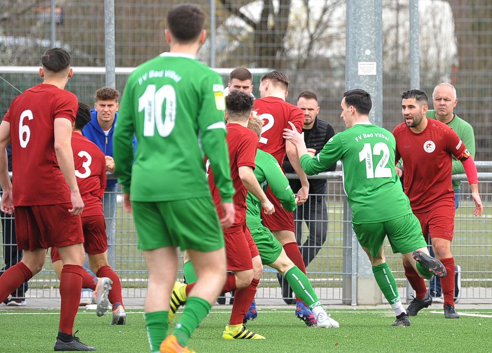 Kurz vor dem Pausenpfiff gelang Rot-Weiss per Kopfball durch Artjom Belavskis das 2:2 (45.). Nach dem Seitenwechsel kassierten die Gastgeber den ersten Platzverweis. Belavskis zog im Strafraum die Notbremse gegen Niklas Kraus und sah die Rote Karte (64.). Den fälligen Foulelfmeter verwandelte Safaridis für die Quellenstädter (65.). Nachdem Fiorenzo Santoro „Gelb-Rot“ gesehen hatte, war Rot-Weiss nur noch zu neunt (78.). Bad Vilbel ließ die Punkte aber auf unerklärliche Art und Weise noch liegen.
