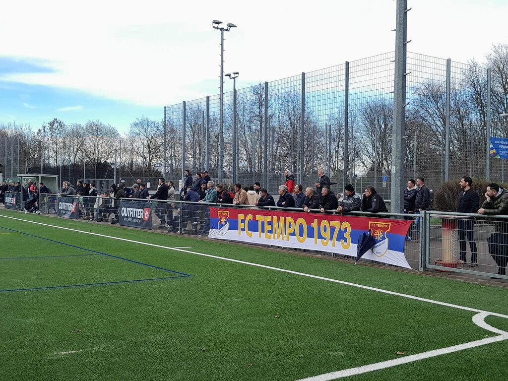 Beide Teams hatten SOMA-Spieler im Kader, bei Tempo spielten sogar welche von Beginn an. Dies machte sich aber kaum bemerkbar, da auch diese älteren Spieler sich perfekt in das Mannschaftsgefüge integrierten. In die Karten spielte den serbischen Fußballern natürlich die frühe Führung durch Boban Dokic (2.). Danach agierte Tempo in seinem typischen Stil, leistete sich kaum Ballverluste oder Fehlpässe. Die Gäste von der Hügelstraße, die auf zehn Spieler verzichten mussten, hielten im ersten Abschnitt gut dagegen und setzten Nadelstiche nach vorne. Insbesondere Stürmer Daniel Wolf lauerte immer wieder auf ein passendes Zuspiel. Nach dem Seitenwechsel hatte Wolf sogar den Ausgleich auf dem Fuß, es fehlte aber wie so oft das Glück im Abschluss.