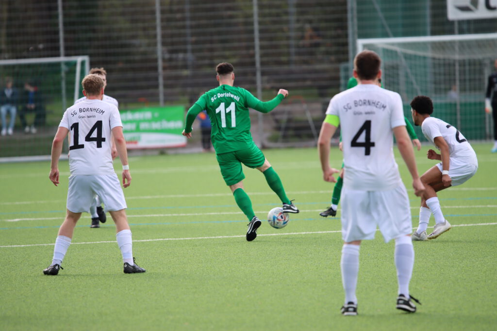 Joel Tewelde hatte die beste Bornheimer Chance, die der Dortelweiler Torwart Yannick Rühl parierte. Nach dem Seitenwechsel hatte der Aufsteiger aus dem Bad Vilbeler Stadtteil die Mehrzahl an Chancen.