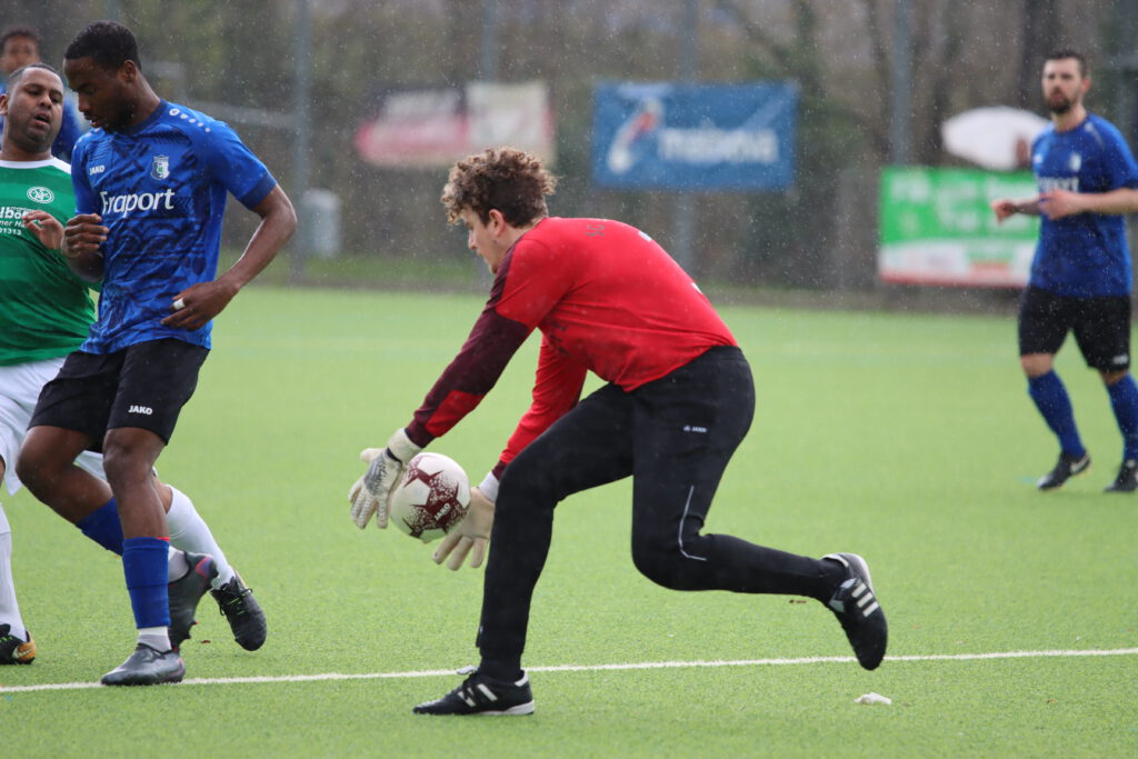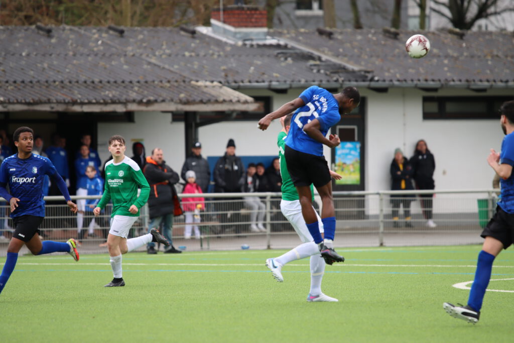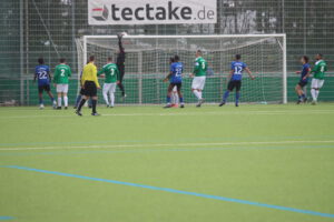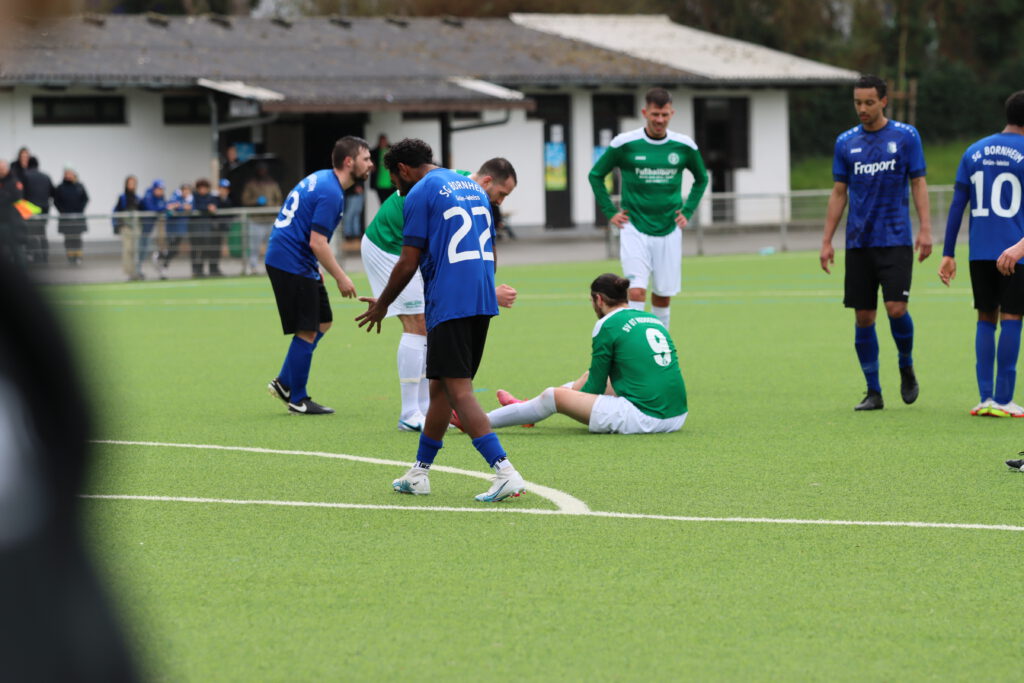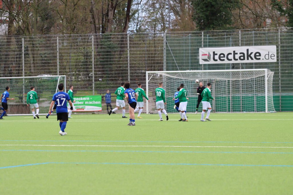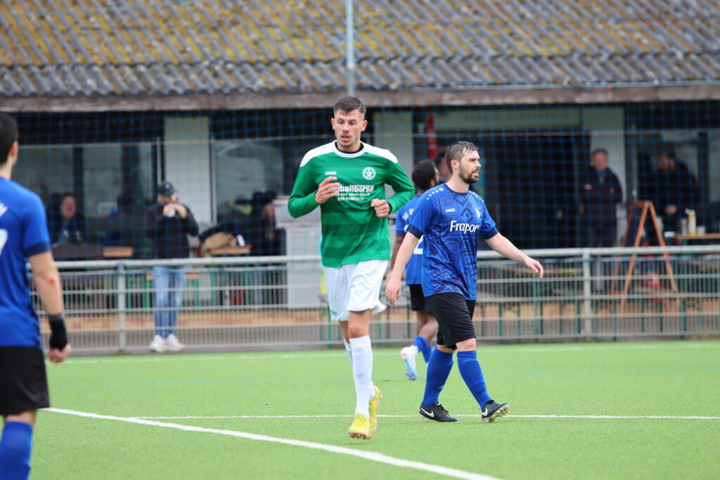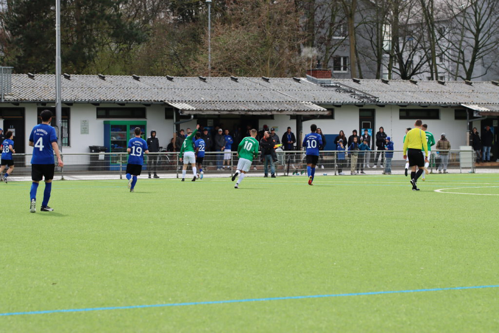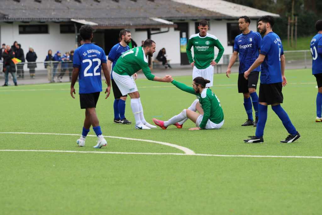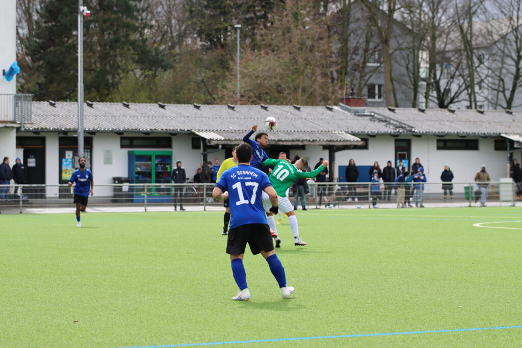 Bornheim II ging dann kurz vor dem Ablauf der ersten halben Stunde in Führung. Hakemi setzte sich auf der linken Seite durch und Raphael Ahmed Gure aus dem Verbandsliga-Kader vollendete zum 1:0 (28.). Einen Bärendienst an seinem Team lieferte dann Petos, der wegen Nachtretens die Rote Karte erhielt (42.). In Unterzahl zeigten die Gastgeber eine gute Mentalität, spielten clever und zogen sich etwas zurück. „Wir haben einen sehr starken Charakter bewiesen. Unsere Teamleistung mit einem Mann weniger war ausschlaggebend. Das war aller Ehren wert“, zeigte sich Bornheims Trainer Lucas Milbredt begeistert. Die Gastgeber ließen die Grün-Weißen spielen, die zu Abschlüssen von Papadopoulos und Solarz kamen, die von Rosengarten entschärft wurden.