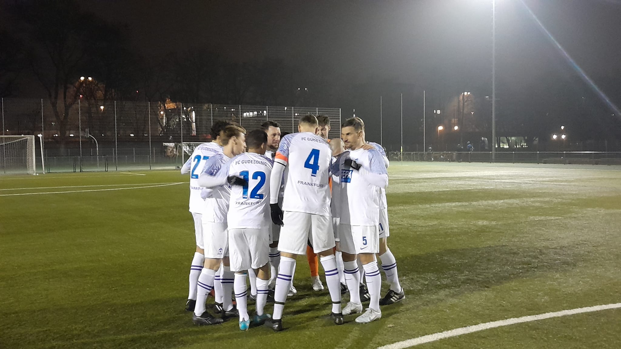 65 Zuschauer kamen zu diesem Südost-Duell in den nasskalten Ostpark. Die Union begann stürmisch, war dadurch aber anfällig für Konter. Einen davon verwertete Daniel Peter zum 1:0 für den FCG (19.). Durch einen direkt verwandelten Freistoß glich Niederrad durch Marco Dietrich aus (27.). Zwei Minuten danach führte ein wunderschöner Angriff der „Guden“ zum 2:1 durch Seyedmohammadreza Hosseini (29.). Postwendend war Adam Langhans mit einem Sonntagsschuss, vor seiner Einbürgerung hieß er noch Aala Aishouna und spielte für den FCG, zum 2:2 zur Stelle (40.).