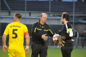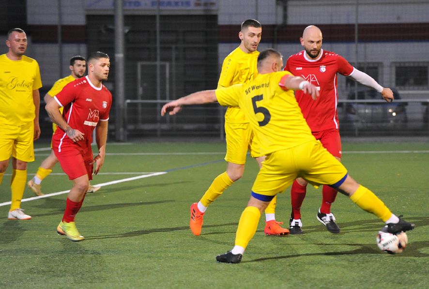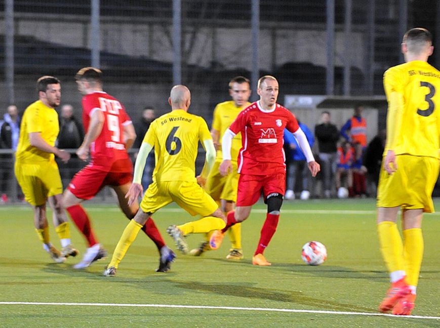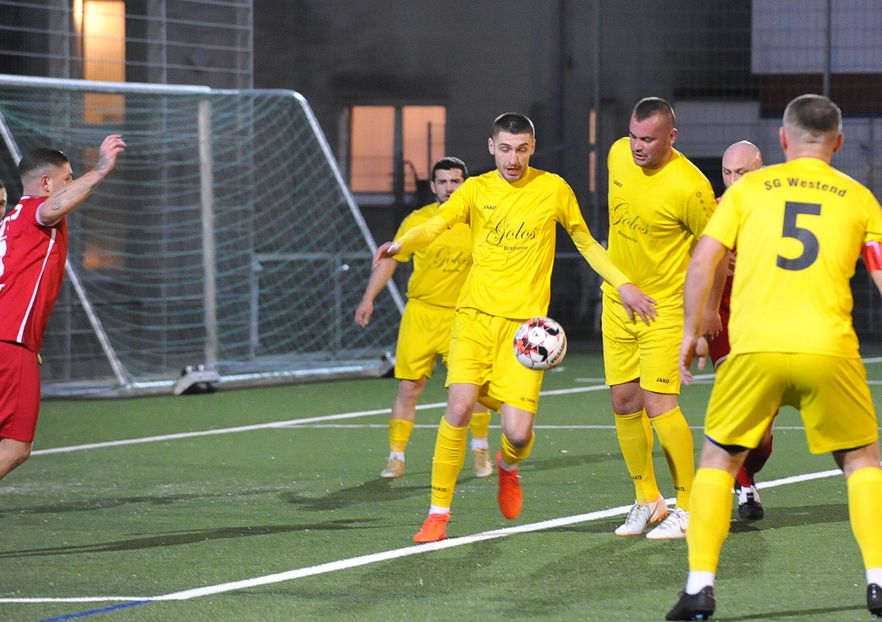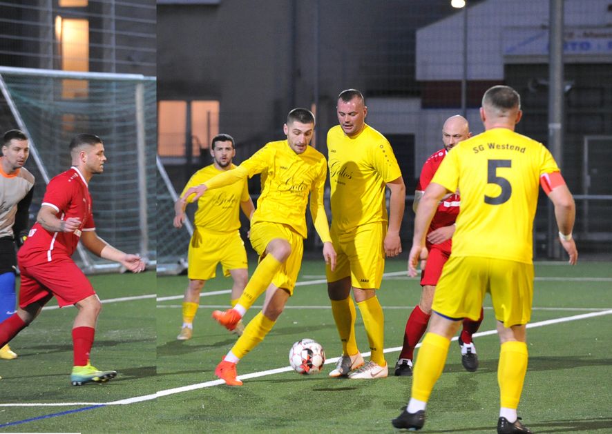 Westend stand kein gelernter Torhüter zur Verfügung, sodass mit Florin Talmaciov ein Feldspieler zwischen den Pfosten stand. Die Gäste spielten von Beginn an frech nach vorne und kamen zu guten Möglichkeiten. Die beste davon vergab Anto Petrasevic vor einer Minikulisse von 36 Zuschauern, davon rund 20 Anhängern der Gäste. Westends Romal Naziri richtete danach einige Worte an den Schiedsrichter. Egal, was er sagte, es reichte um ihn erstmal per Zeitstrafe für zehn Minuten zum Abkühlen zu schicken (23.). Trotz Unterzahl gelang wie schon am Sonntag Aleksandar Ristic das 1:0 für Westend (31.) Postwendend glich im Gegenzug Danijel Koturic zum 1:1 aus (32.). Im zweiten Abschnitt hatte Mirsen Mehmedovic für Westend Pech mit einem Lattenschuss (51.). Spätenstens eine Viertelstunde vor dem Ende gingen beim Gruppenliga-Absteiger die Kräfte aus.