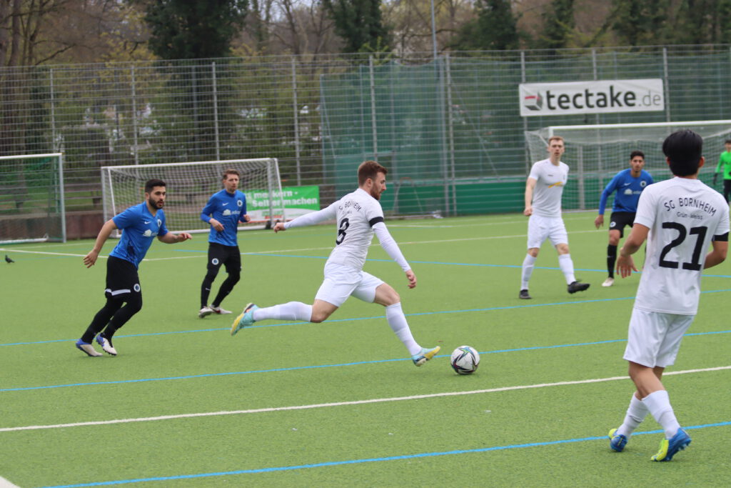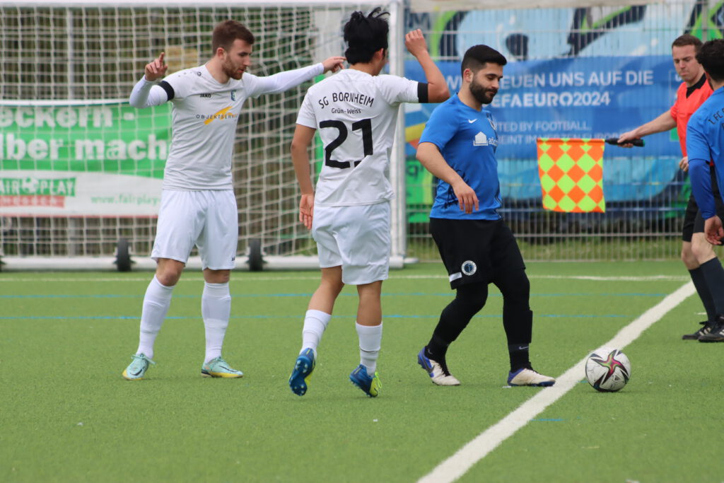 Da lagen die Bornheimer bereits durch einen direkt verwandelten Eckball von Joel Tewelde mit 1:0 vorne (17.). „Das hat den weiteren Spielverlauf stark beeinflusst“, erklärte Jörg.