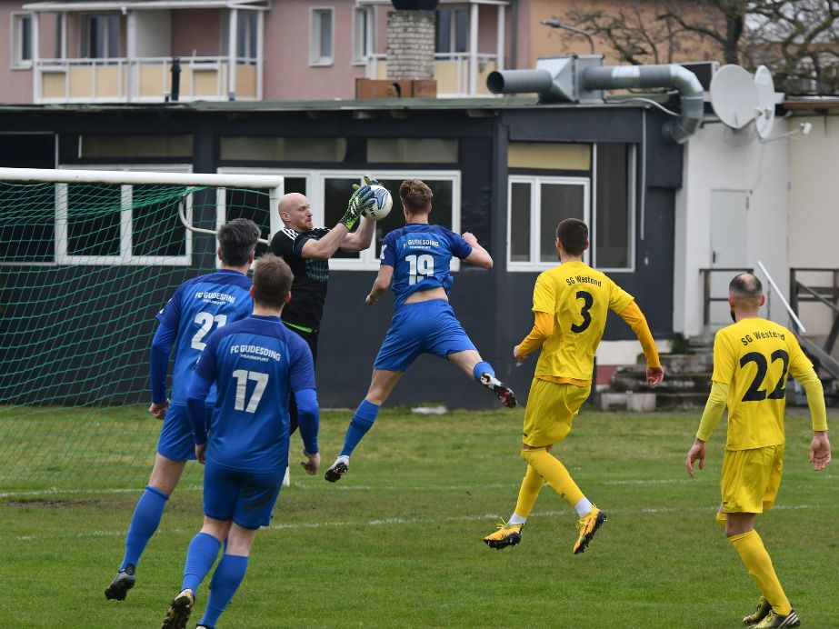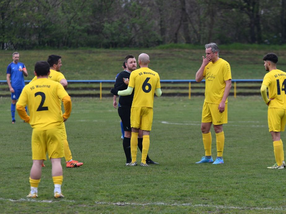 Dann schwächte sich der Gruppenliga-Absteiger auch noch selbst durch undiszipliniertes Verhalten. Erst bekam Kapitän Mirsen Mehmedovic eine überflüssige Zeitstrafe wegen Meckerns (65.). Dann pfiff Schiedsrichter Kevin Hammerschlag nach einem Eckball in einer undurchsichtigen Situation Elfmeter für Gudesding. Westends Rejhan Poturovic regte sich darüber auf und erhielt wegen Schiedsrichterbeleidigung die Rote Karte (67.).