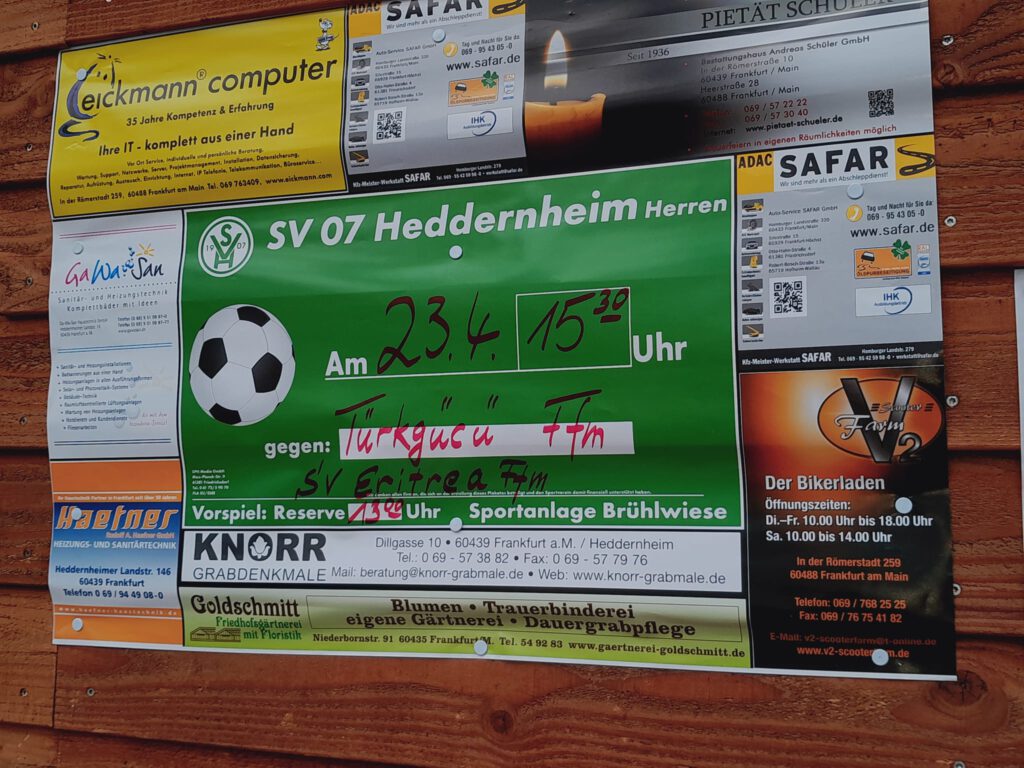 Saisonrekordkulisse an der Brühlwiese! 170 Zuschauer bildeten einen tollen Rahmen. Die Gäste brachten gut und gerne 60 Anhänger mit, aber auch das Heddernheimer Publikum strömte auf den Sportplatz. Im ersten Abschnitt war noch nicht abzusehen, dass die bis dahin torlose Partie sich nach dem Seitenwechsel in ein Spektakel der Hausherren verwandeln würde. In der Anfangsphase vergaben Oliver Solarz (Diagonalball auf den Stürmer, Gästekeeper Murat Nakipoglu unsicher), Christos Papadopoulos (Kopfball drüber) die ersten Gelegenheiten. Auf der anderen Seite tauchte Ertap Turgut gefährlich vor dem Heddernheimer Kasten auf, aber SVH-Keeper Marcin Czukiewicz war auf dem Posten. Zwei Pfostentreffer von SVH-Youngster Milan Drozdowski (26./34.) hätten die Führung bringen können, aber es ging torlos in die Kabinen.