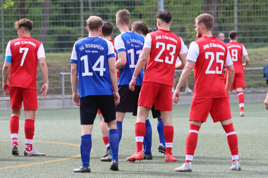 In der chancenarmen Begegnung war Neu-Isenburg auf dem Kunstrasenplatz zunächst in den Zweikämpfen griffiger und präsenter. Die beste Bornheimer Chance in Abschnitt eins vergab Stürmer Lukas Knell. Er schoss Neu-Isenburgs Torwart Maximilian Hinterkopf an den Fuß (25.). In der Schlussphase gab es noch eine strittige Szene. Der in der 73. Minute eingewechselte Mohamedelamin Camara wurde im Strafraum von einem Gegenspieler getroffen.