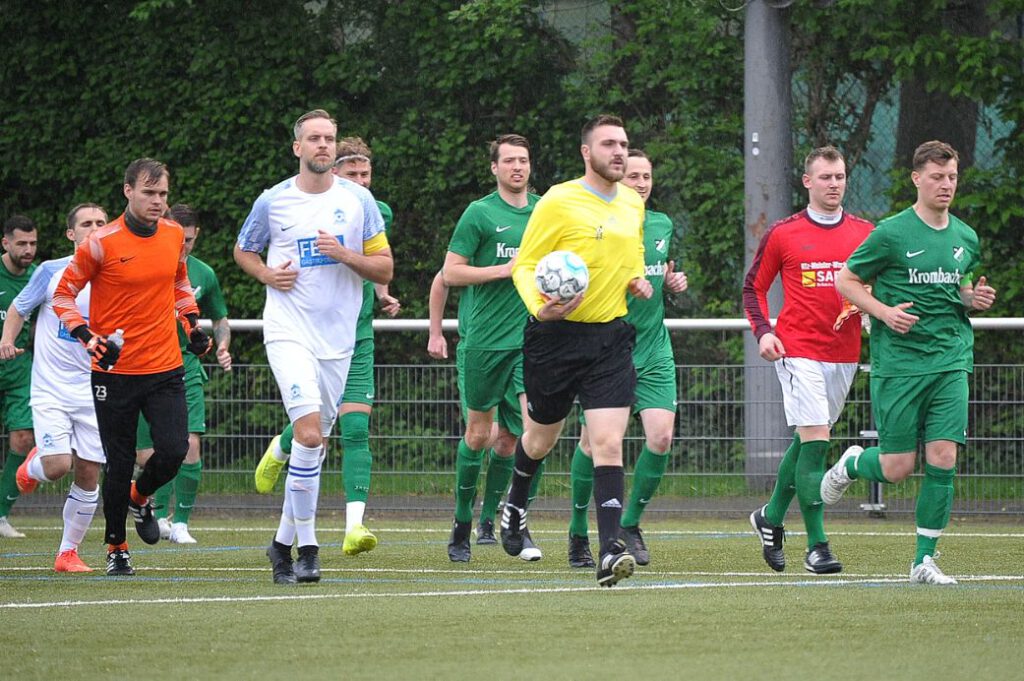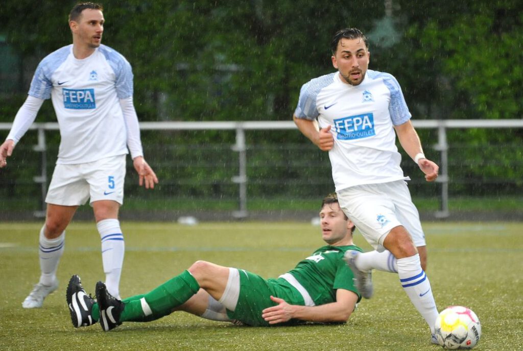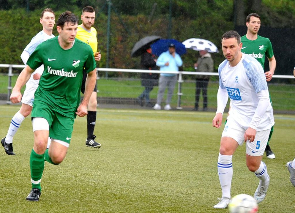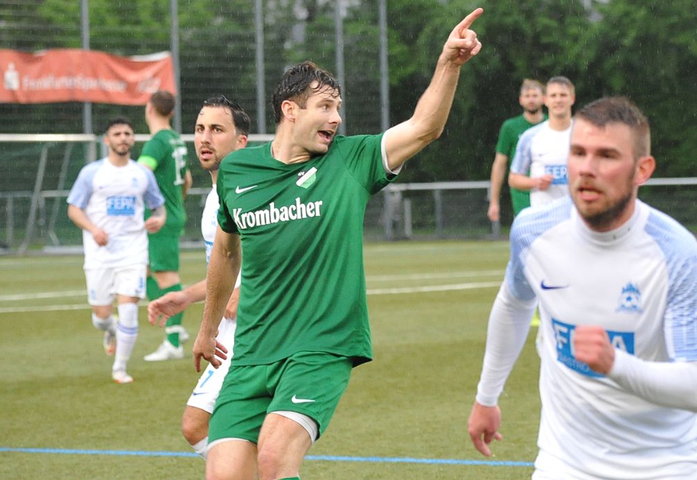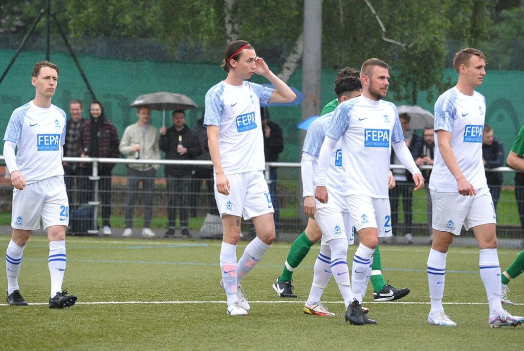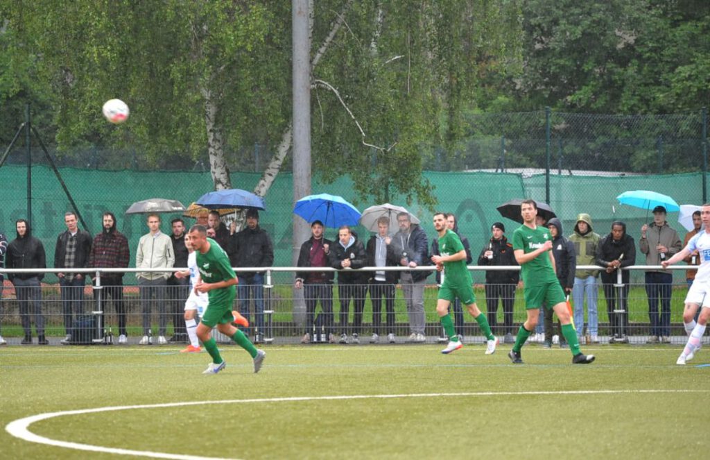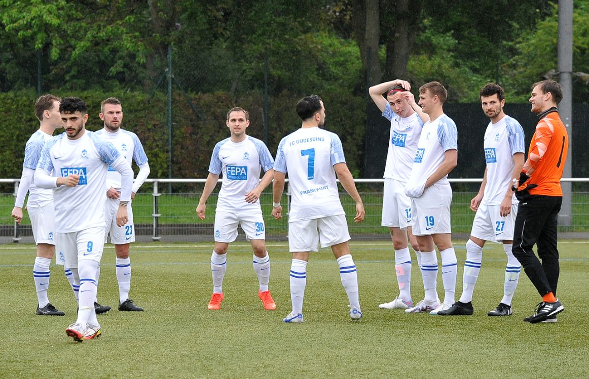Nun segelten permanent nur noch lange Bälle in den Strafraum, einer davon erreichte den A-Jugendlichen Adrijan Aslimoski, der den Ball im Strafraum an FCG-Tormann Sven Lissek vorbei spitzelte (90./+4). Nun jubelten die Gastgeber lautstark, denn sie blieben im siebten Spiel in Folge ungeschlagen. Gudesding tun diese in der Overtime verlorenen zwei Punkte extrem weh. Nun muss man tatenlos mit ansehen, wie die Bornheimer Reserve mit zwei Heimsiegen gegen Union Niederrad und die SG Westend die Teilnahme an der Aufstiegsrelegation schon fix machen kann. Denn am Sonntag ist man spielfrei und das Spiel vom Spieltag an Christi Himmelfahrt wurde ja jetzt schon ausgetragen. Die Chancen der „Guden“ sind also auf einen Schlag stark gesunken. Preußen-Trainer Artur Rissling war mit dem Ergebnis zufrieden: „Klar, wir hatten in der ersten Halbzeit Glück mit dem Lattenkopfball. Ansonsten wenn wir das sauber zu Ende spielen, dann gewinnen wir das Spiel. Es war ein sehr intensives Spiel gegen einen wirklich guten Gegner. Gudesding steht zurecht da oben, wobei ich sie ein bisschen fairer in Erinnerung habe. Es war schon sehr hektisch. Das hatte ich so nicht erwartet, obwohl es ja für die um viel ging. Zwei Schüsse auf das Tor und die führen 2:0, beides vermeidbar. Nach dem 1:2 haben wir mit langen Bällen alles probiert und einer ist dann durchgekommen zu Adrijan.“