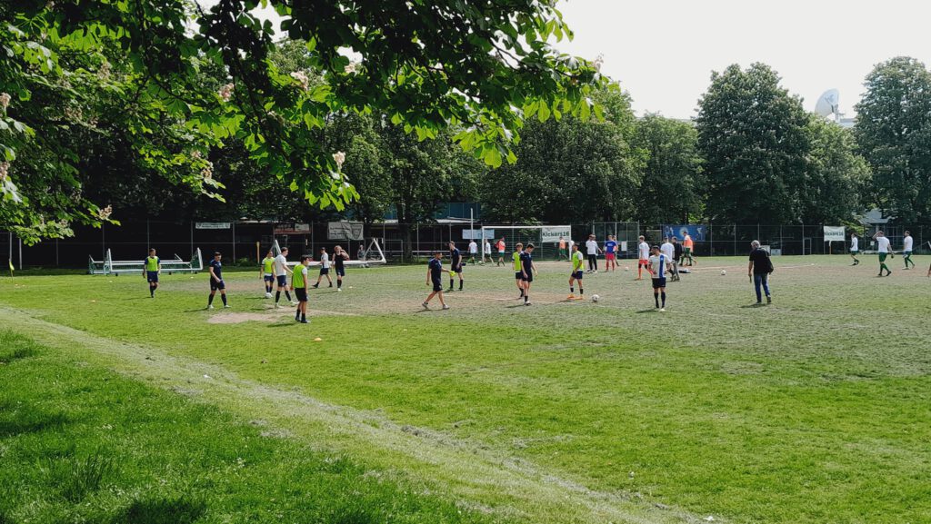 „Wir sind mit einer sehr verjüngten Mannschaft angetreten, denn die Oldies waren diesmal nicht dabei. Ohne Peter Ogrodnik und Marlon Huberman waren wir hinten diszipliniert. Der Gegner hat wohl aufgrund des feststehenden Klassenerhalts einige seiner Topleute geschont“, erkannte Makkabis Co-Trainer Peter Ogrodnik. In der Tat rotierte SVH-Trainer Andreas Berggold durch und setzte mit Torhüter Marcin Czukiewicz, Oliver Solarz, Orazio Giorgianni und Antonie Willeführ vier Stammspieler auf die Bank. Dazu fehlte Youngster Milan Drozdowski. Als Kapitän trat Routinier Dawit Demeke auf, der nächste Saison nicht mehr im grünen Dress aufläuft. Einsatzzeiten erhielten ferner Torwart Marc Tomczyk, Ozan Bagdu, Rojhat Ügüt und Vladislav Balzer. Auf der nicht bewässerten Bertramswiese war ein Aufbauspiel fast nicht möglich, von daher waren lange Bälle Trumpf und vor allem das Nachsetzen bei den virtuellen „zweiten Bällen“.