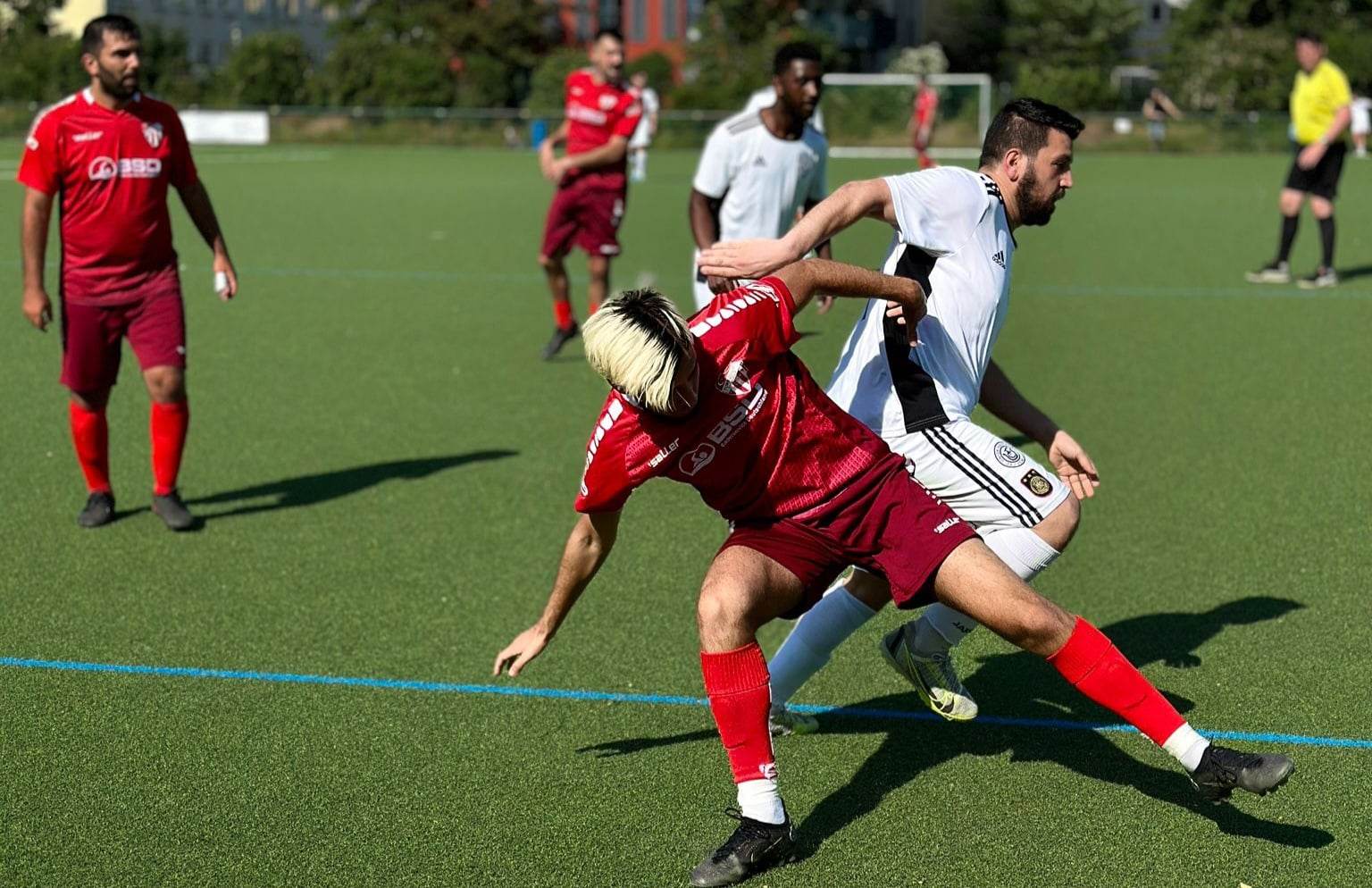 Der von Rückzieher TSG Niederrad verpflichtete Nuno Miguel Pires Lopes war der Matchwinner bei den Gästen. Eren Kadimlis Anschlusstor (48.) folgte die Vorbereitung von Pires Lopes des 2:2 durch Alain Bylon (62.). In der Schlussphase markierte der Portugiese gar das 3:2 für die Gäste (78.). TSKV-Coach Mehmet Tunay Somun hatte „bei den Sommerbedingungen ein recht ausgeglichenes Spiel“ gesehen.