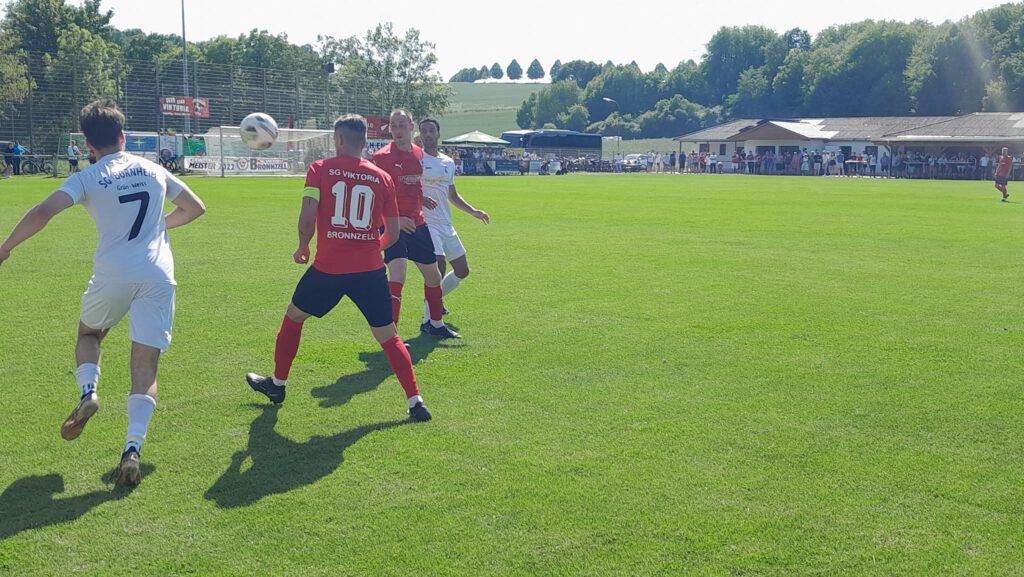 Für Bronnzell war es ein versöhnlicher Abschluss, präsentierte sich das Team von Trainer Stefan Dresel doch wesentlich kompakter und druckvoller als bei der Pleite drei Tage zuvor. Die Hausherren versuchten früh anzulaufen, was die Bornheimer auf dem Naturrasen zu Fehlern zwang. „Diese Umstellung merkte man den Jungs auf dem ungewohnten Terrain besonders bei der Passschärfe an“, erklärte Bornheims Trainer Sascha Volk, dessen Team dennoch eine gute Anfangsphase mit einigen Möglichkeiten spielte.