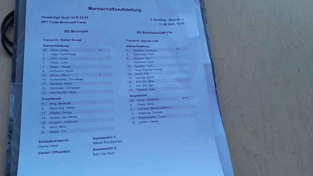 Bornheim ließ es nun ruhiger angehen und sparte bei 30 Grad im Schatten Kräfte für das Finalspiel. „Die zweite Halbzeit haben wir es gut runter gespielt. Das 1:1 hat uns wieder Sicherheit gegeben, auf einmal waren alle wieder einen Tick mutiger. Über zwei Spiele war es aber verdient, dass wir jetzt am Mittwoch die große Chance haben, in die Hessenliga aufzusteigen“, sagte Volk. Kurz vor Schluss stand dann noch Schiedsrichter Daniel Heist im Mittelpunkt, der aus nicht nachvollziehbaren Gründen einen Elfmeter für Bornheim an Camara pfiff. Nach der Intervention eines Assistenten sah der Referee seinen Irrtum ein und nahm den Pfiff zurück.