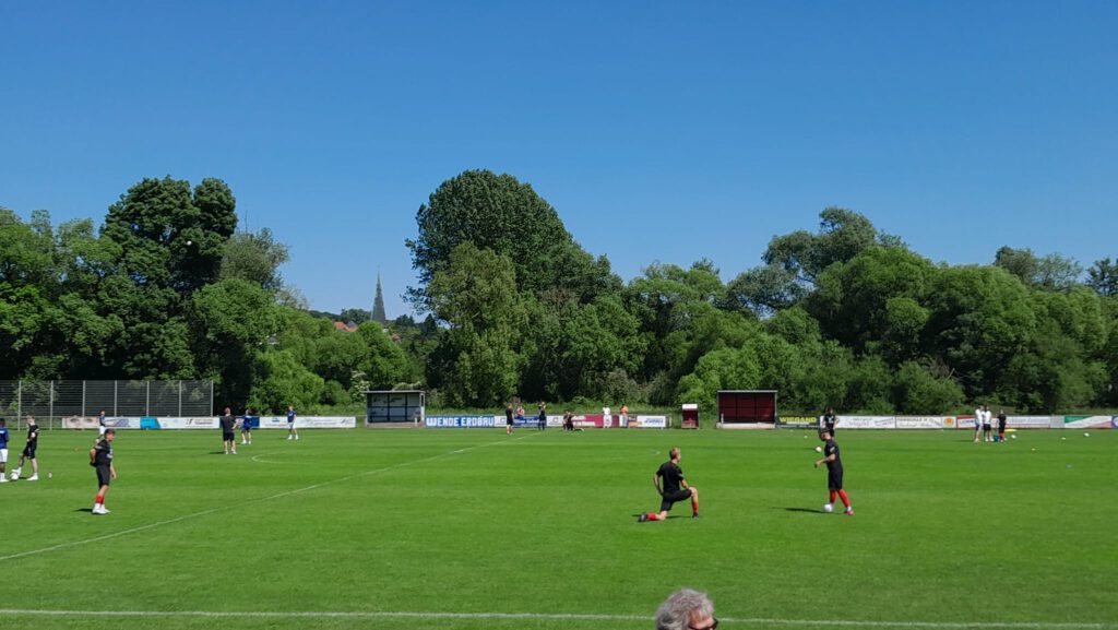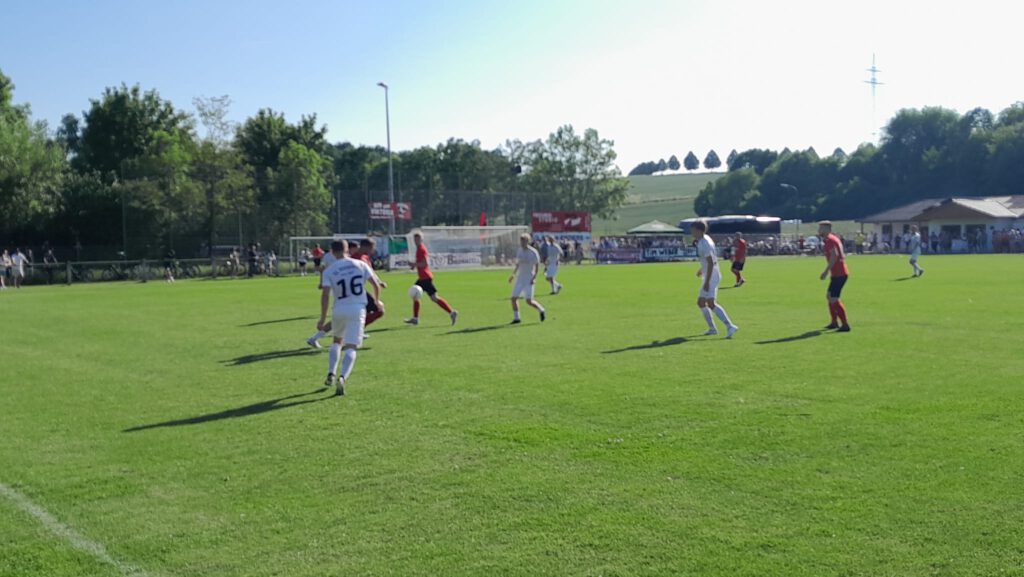 „Durch das 5:0 im Hinspiel war es etwas tricky, denn wir mussten überlegen, wie wir es angehen. Es war ja auch klar, dass das zweite Spiel nicht so weiter gehen würde, wie das erste aufgehört hatte“, schilderte der Bornheimer Coach. Ganz und gar nicht, denn nach der Bronnzeller Führung durch Christoph Sternstein (18.) hatte Tim Niklas Horenkamp kurz danach den zweiten Treffer auf dem Fuß. Sternstein und Marek Weber verpassten es in der Folge zu erhöhen, sodass es mit dem 1:0 in die Pause ging. „Das Gegentor kam etwas zu früh. Da hat man schon gemerkt, dass sie den Glauben hatten und ihre Zuschauer da waren. Wir haben es aber auch mit etwas Glück insgesamt gut weg verteidigt“, so Volk. Nach dem Seitenwechsel war die Entscheidung durch den Linksschuss von Mohamedelamin Camara zum 1:1 (51.) dann schnell gefallen.